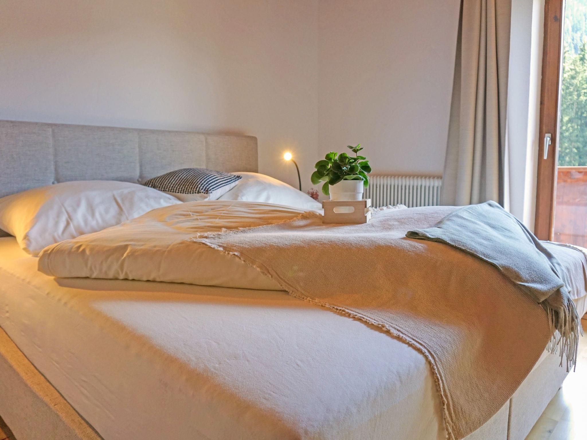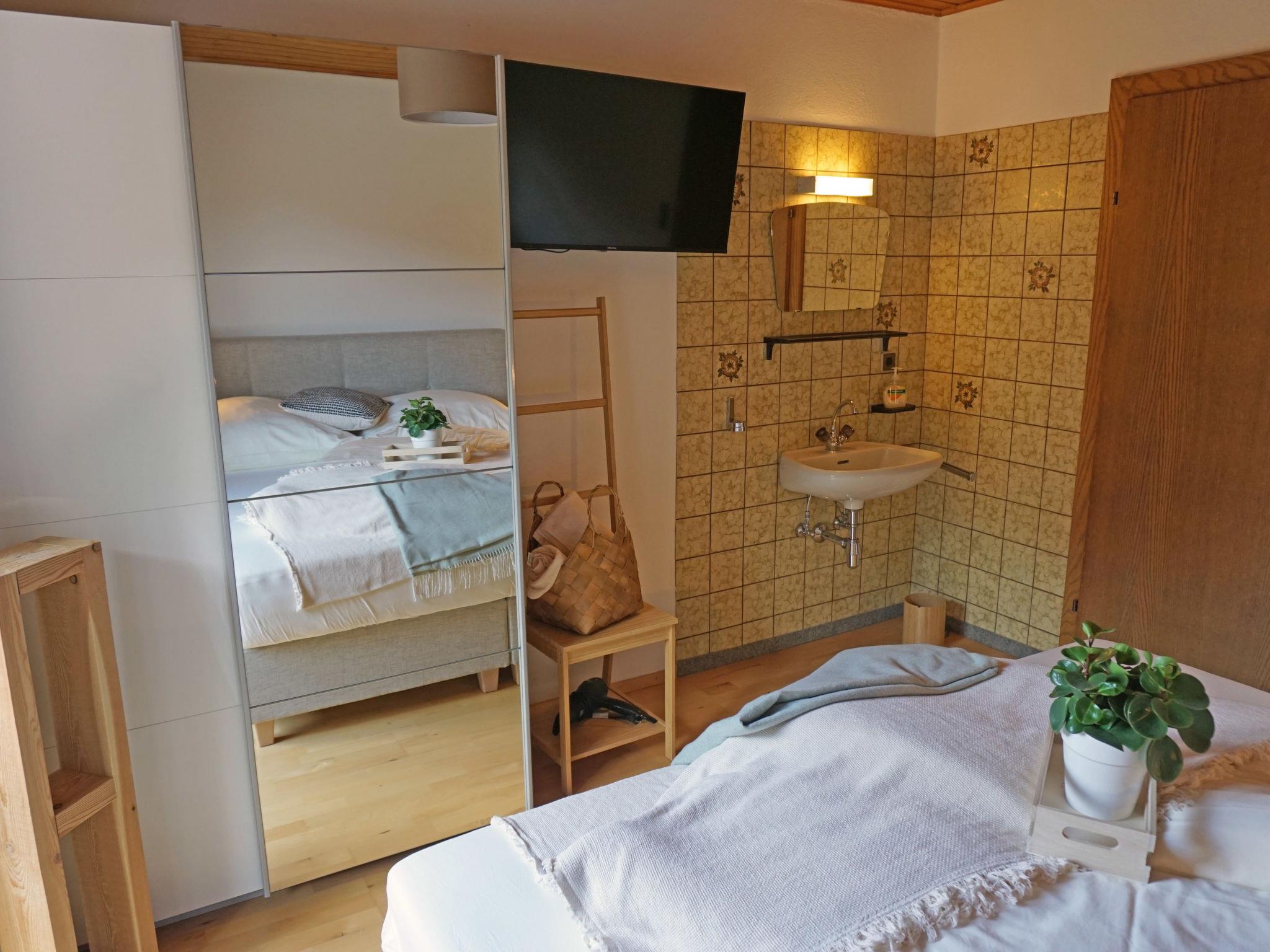"Elisabeth", 4-Zimmer-Wohnung 110 m2, im Obergeschoss. Geräumig und hell, gemütlich eingerichtet: Eingang. 1 Doppelzimmer mit Dusche und TV (Flachbildschirm). Ausgang zum Balkon. 1 Doppelzimmer mit Waschbecken und TV (Flachbildschirm). Ausgang zum Balkon. 1 Doppelzimmer mit Dusche/WC und TV (Flachbildschirm). Grosse Wohnküche (Backofen, Geschirrspüler, 2 Glaskeramikplatten, Wasserkocher, elektrische Kaffeemaschine) mit Esstisch und TV (Flachbildschirm), Radio. Dusche, sep. WC. Heizung. Grosser Balkon, Südlage. Balkonmöbel. Schöne Sicht auf die Berge. Zur Verfügung: Haartrockner. Internet (Wireless LAN, gratis). Bitte beachten: Kühlschrank ohne Gefrierfach. Bei Belegung mit weniger Personen als der maximalen Personenzahl stehen nicht alle Schlafzimmer zur Verfügung.
