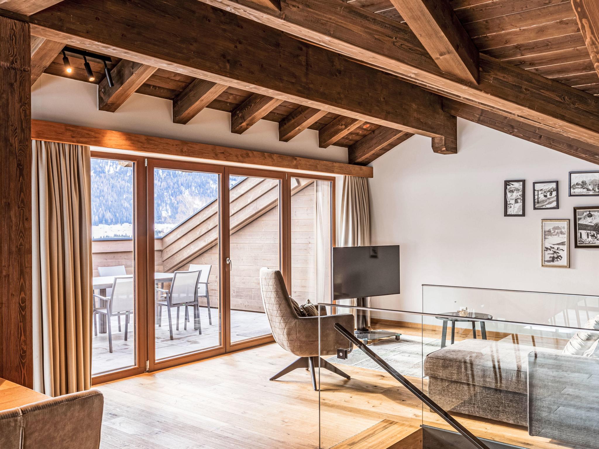 "Penthouse mit 3 Schlafzimmern", 4-Zimmer-Dachterrassenwohnung 134 bis 159 m2. Hell, modern und geschmackvoll eingerichtet: Wohn-/Schlafzimmer mit 1 Doppeldiwanbett, Esstisch und Sat-TV (Flachbildschirm). 3 Doppelzimmer, jedes Zimmer mit Sat-TV (Flachbildschirm). Offene Küche (Backofen, Geschirrspüler, 4 Glaskeramikplatten, Toaster, Wasserkocher, Mikrowelle, elektrische Kaffeemaschine, Kapseln für die Kaffeemaschine (Nespresso) extra). Bad/WC, 2 Duschen/WC, 3 sep. WC's. Heizung. Terrasse 15 m2. Terrassenmöbel. Schöne Sicht auf die Berge. Zur Verfügung: Haartrockner. Internet (Wireless LAN, gratis). Bitte beachten: Nichtraucher-Unterkunft.