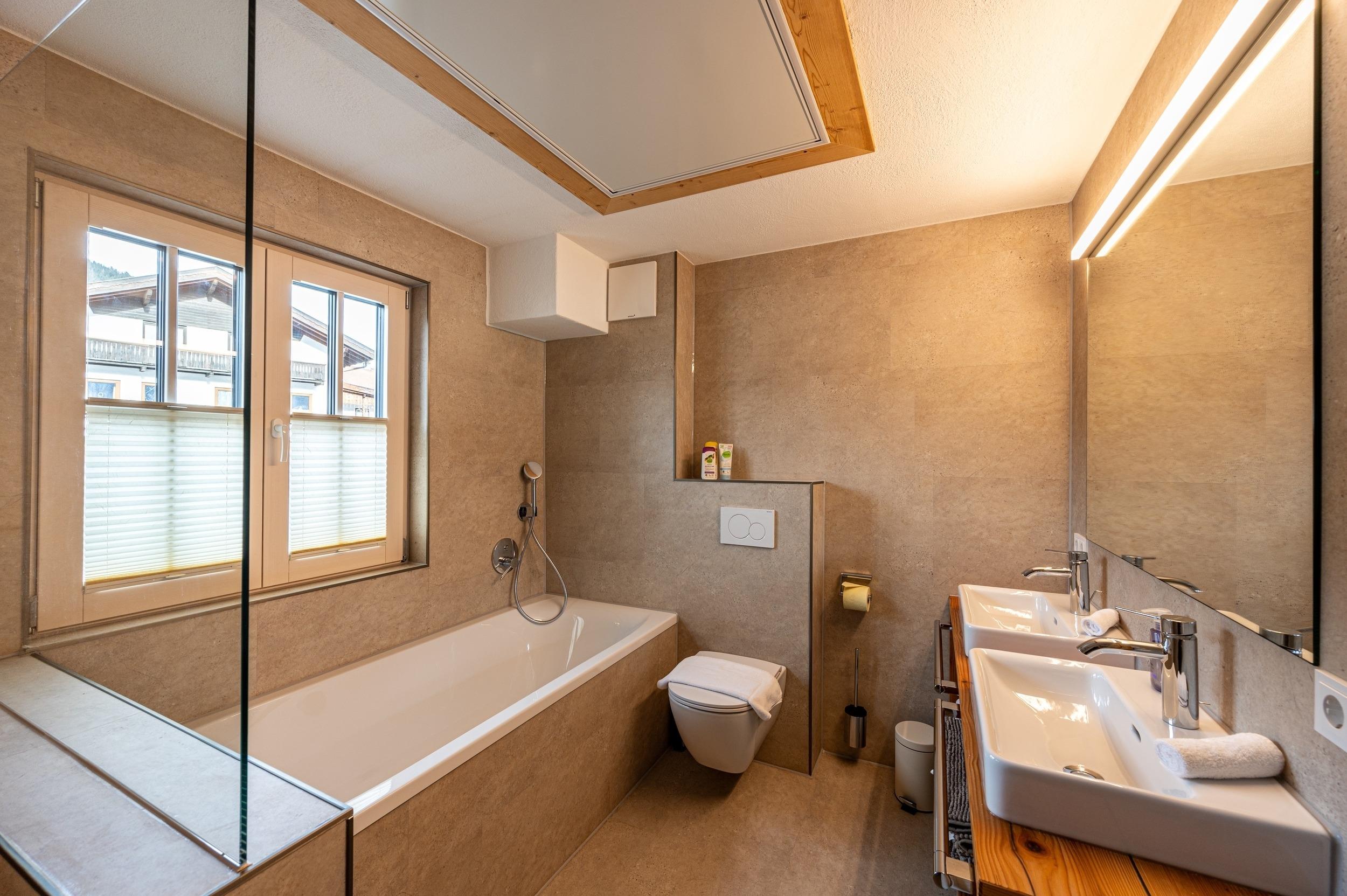 1 Bad mit Doppelwaschbecken, Dusche,WC und Badewanne