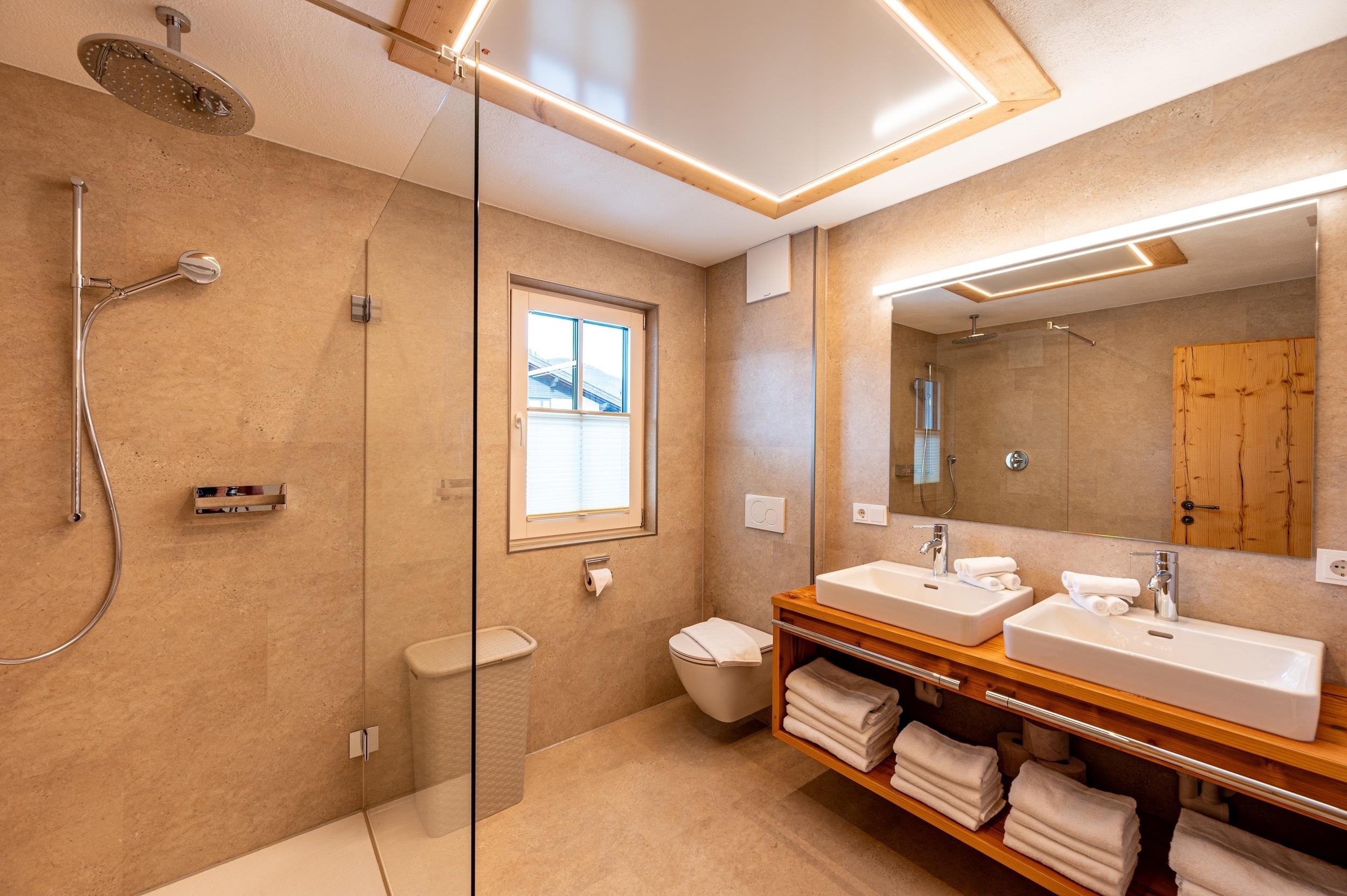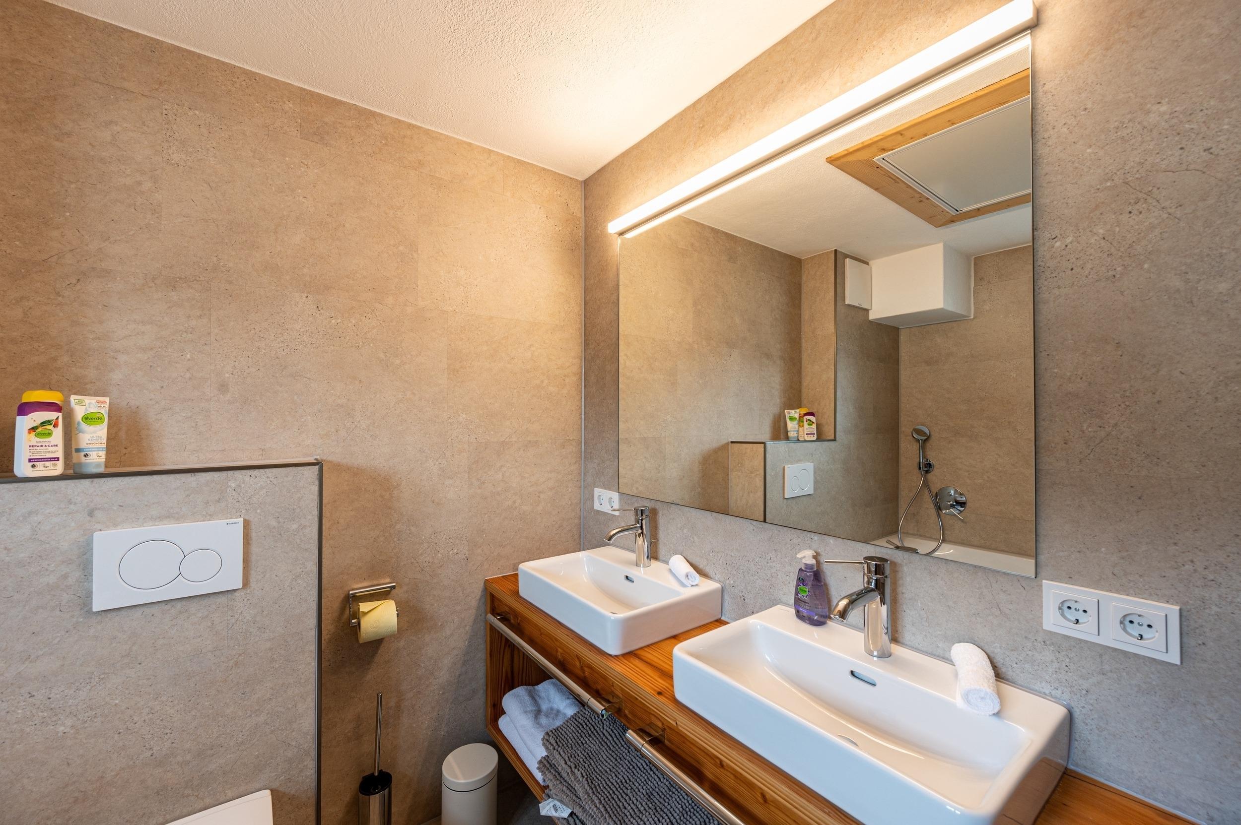 1 Bad mit Doppelwaschbecken, Dusche und WC