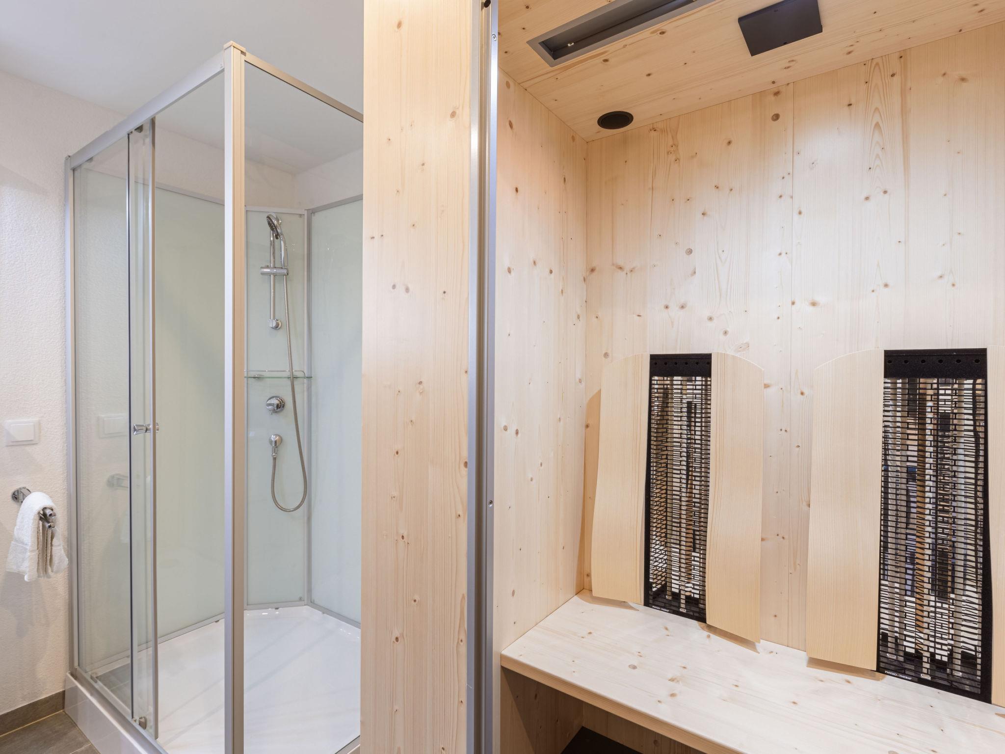 "Superior mit IR-Sauna", 3-Zimmer-Wohnung 63 m2. Modern und gemütlich eingerichtet: Wohn-/Esszimmer mit Esstisch und Sat-TV (Flachbildschirm). 1 Doppelzimmer. 1 Zimmer mit 1 x 2 Etagenbetten, 1 Doppelbett. Offene Küche (Backofen, Geschirrspüler, 4 Glaskeramikplatten, Toaster, Wasserkocher, Mikrowelle, elektrische Kaffeemaschine). Sep. WC, Bad/Dusche/WC, Sauna. Heizung. Balkon. Balkonmöbel. Schöne Sicht auf die Berge. Zur Verfügung: Internet (WLAN, gratis). Bitte beachten: Nichtraucher-Unterkunft. Maximal 1 Haustier/Hund erlaubt. Die Sauna ist eine Infrarotsauna. SP 10/3