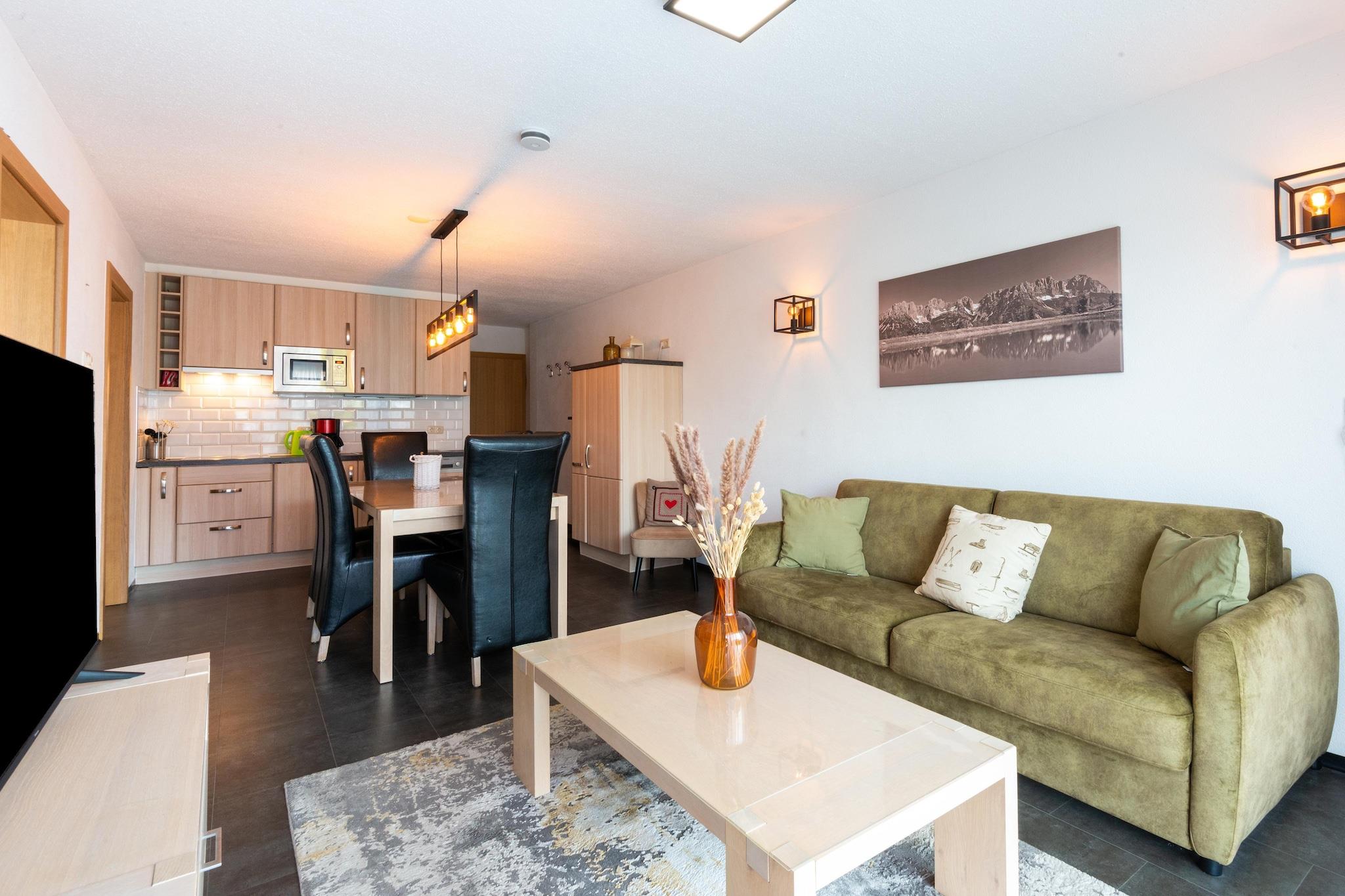 Willkommen in unserer wunderschönen Ferienwohnung, ideal für Familien oder Gruppen von Freunden bis zu 8 Personen. Unsere Unterkunft bietet 2 Schlafzimmer, 2 kleine Badezimmer, 2 extra Toiletten und ein gemütliches Wohnzimmer mit einer Schlafcouch, einer offenen Küche und Essbereich. Unser Apartment befindet sich im Erdgeschoss und verfügt über eine herrliche Terrasse sowie einen Garten mit Blick auf die majestätischen Berge. Die Lage könnte nicht besser sein – dank der Ski-in & Ski-out Möglichkeit können Sie direkt von der Skipiste Kirchbichl starten und die frische Bergluft genießen. Für Skifahrer und Snowboarder ist dies ein wahres Paradies! Aber auch abseits der Pisten bietet Ellmau eine Fülle von Aktivitäten für alle Jahreszeiten. Im Sommer laden die umliegenden Berge zu atemberaubenden Wanderungen und Erkundungstouren ein. Entdecken Sie die Schönheit der Tiroler Alpen zu Fuß und erleben Sie die unberührte Natur hautnah. Der nahegelegene Badesee Going bietet eine erfrischende Abkühlung an heißen Tagen und ist ideal für Familienausflüge. Alternativ lockt der idyllische Schwarzsee in der Nähe der Stadt zu entspannten Tagen am Wasser. Die Wohnung selbst liegt zentral und ermöglicht einen bequemen Zugang zu weiteren Skigebieten und Attraktionen in der Umgebung. Egal, ob Sie die Pisten hinunter sausen oder die sommerliche Berglandschaft erkunden möchten – diese Ferienwohnung bietet die perfekte Basis für einen unvergesslichen Aufenthalt in Ellmau.