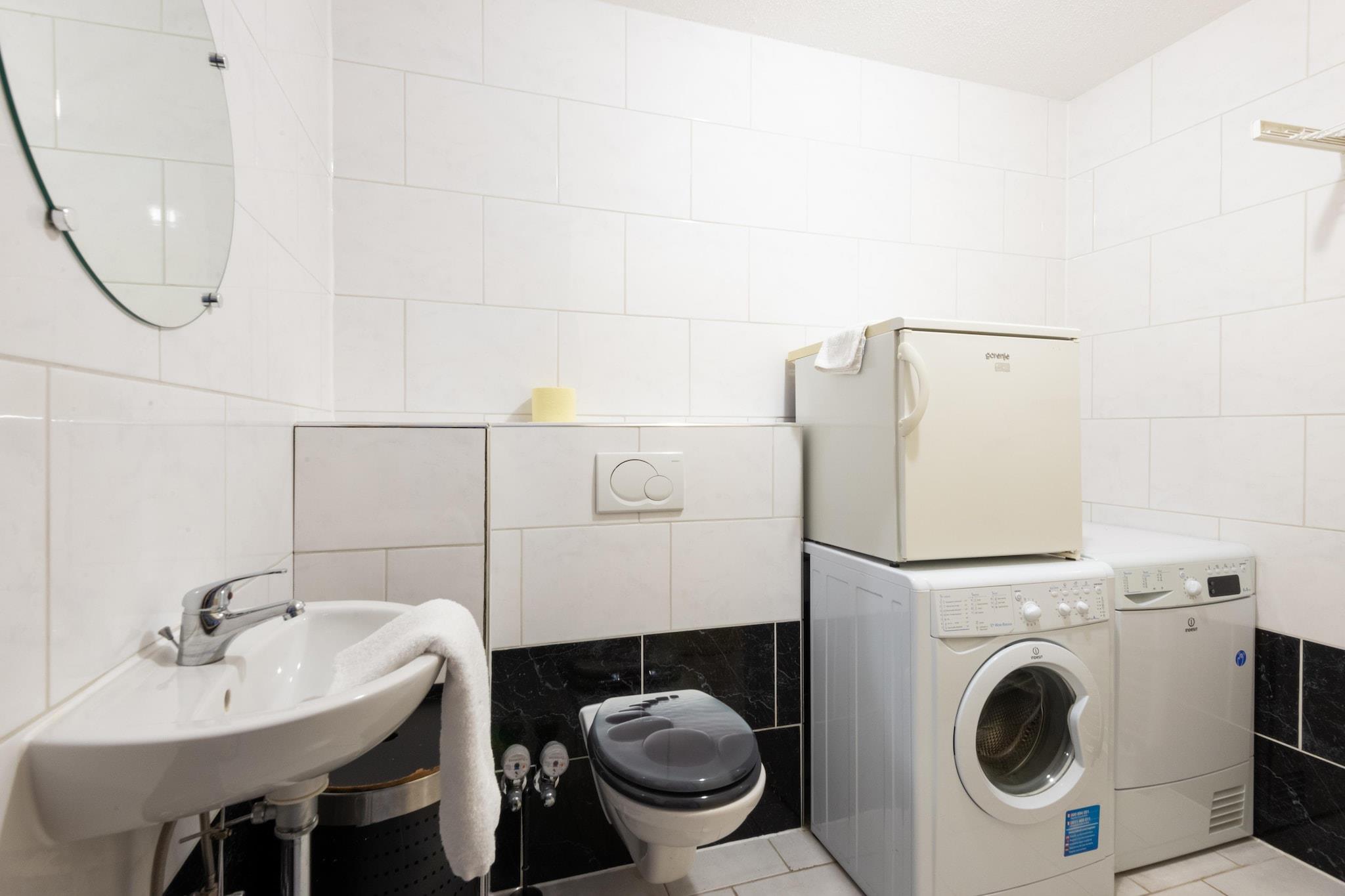 Parterre: (offene Küche(Kochplatte, Wasserkocher, Toaster, Kaffeemaschine, Spülmaschine, Kühlschrank), Wohn-/Schlafzimmer(Doppelschlafcouch, TV, Esstisch), Schlafzimmer(Doppelbett), Schlafzimmer(Doppelbett, Etagenbett), Badezimmer(Dusche, Waschbecken, Toilette), Badezimmer(Dusche, Waschbecken, Toilette), Toilette(Trockner, Toilette, Waschmaschine), Terrasse, Garten) Tiefkühlschrank, Parkplatz