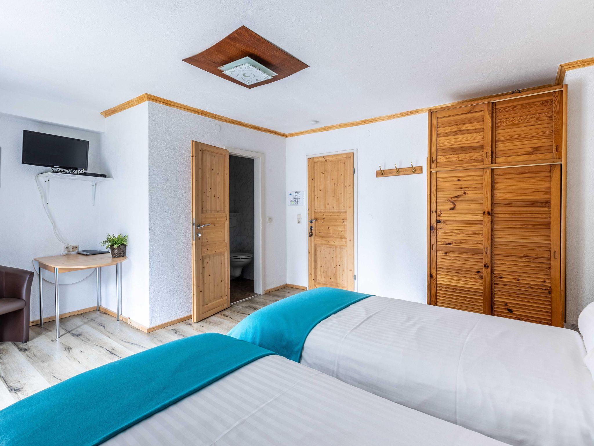 Willkommen im Zimmer 5, Deinem perfekten Rückzugsort für einen erholsamen Aufenthalt. Das bequeme 22 m² Doppelzimmer (2x Einzelbett) befindet sich im 1.Stock und bietet Flat-TV. Das Bad verfügt über Dusche und WC. Genieße den Komfort einer eigenen Unterkunft und entspanne in ruhiger Umgebung. Vom Zimmer gelangst Du auf den Balkon mit Waldblick.