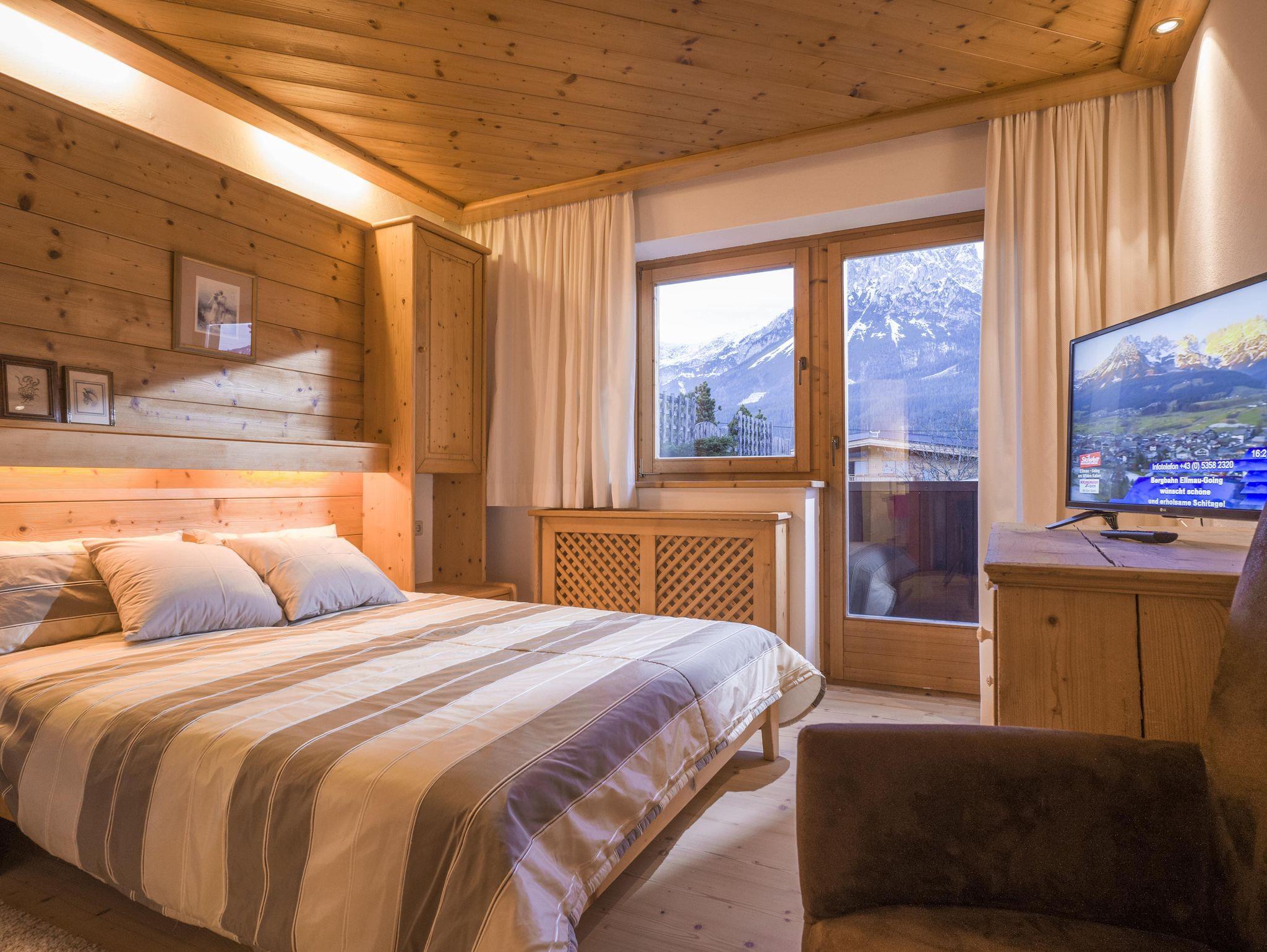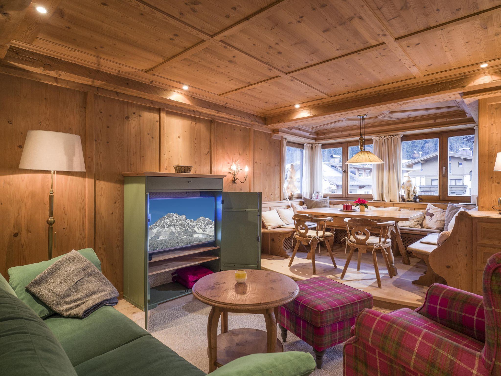 Komfortables, in Altholz und Einbaumöbel ausgestattetes Appartement in unserer Dependance Dorf 39 in Ellmau. Zentral gelegen und perfekte Anbindung an Skibus und im Sommer zum KaiserJet. Direkt im Haus befindet sich auch eine Pizzeria mit Bar und ein Supermarkt. Zwei vollwertige Schlafzimmer mit jeweils eigenem Bad stehen zur Verfügung.