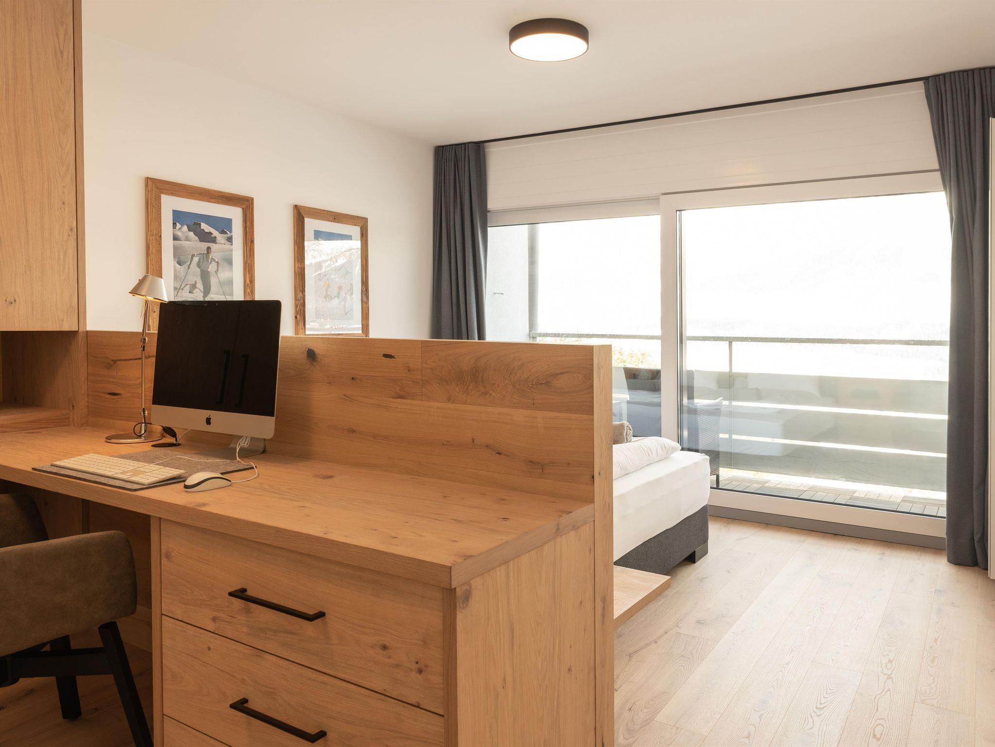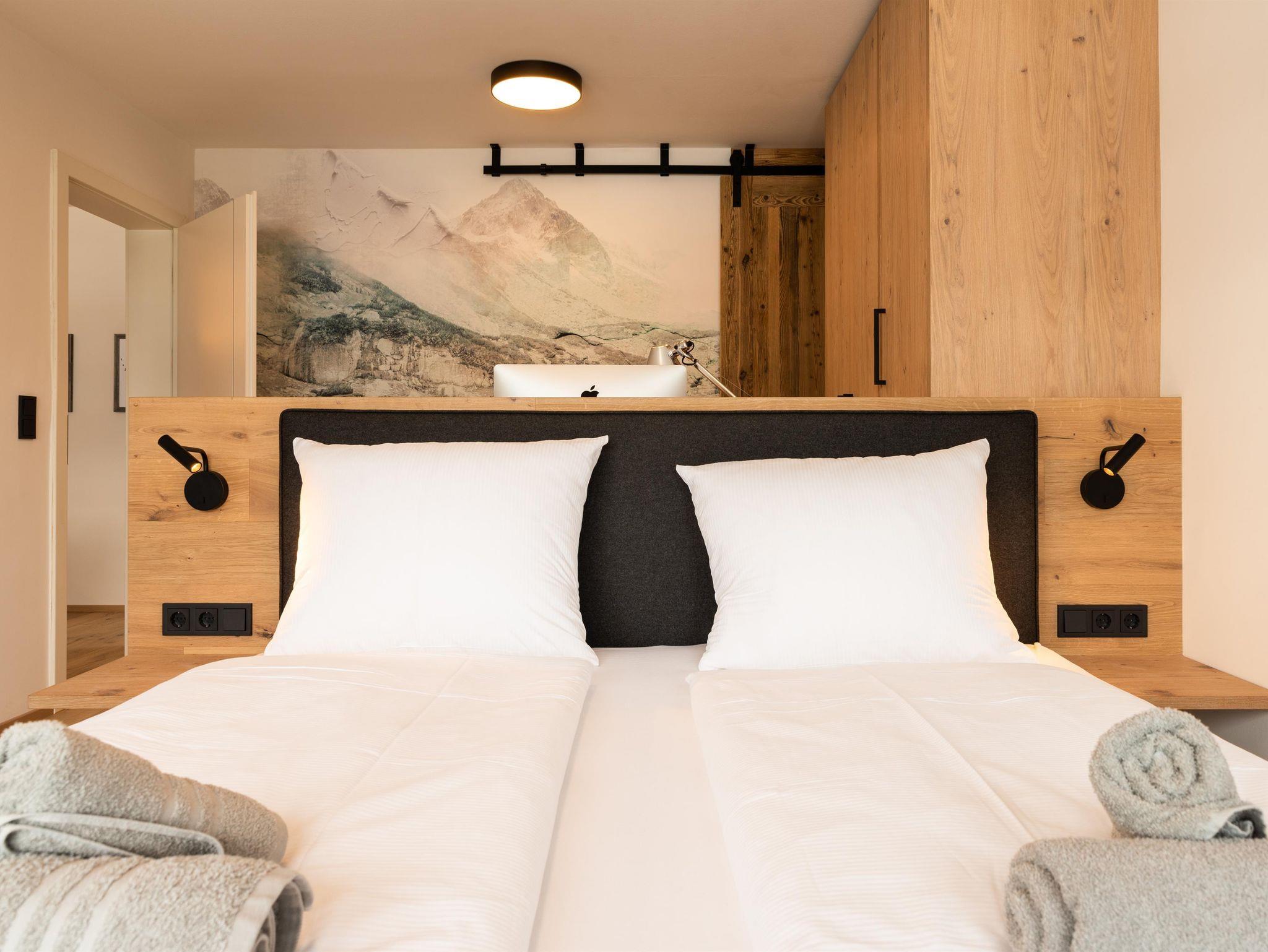 Bis Ende November 22 wurde die Wohnung komplett renoviert, mit Ausnahme vom Bad. Holzdielen wurden überall verlegt. Im Schlafzimmer gibt es jetzt einen Arbeitsplatz, der mit einem Rechner und Tastatur ausgestattet ist fürs Homeoffice; schon beim Aufwachen kann man den super Blick auf den Wilden Kaiser genießen. Im Wohnzimmer steht jetzt eine gemütliche Eckbank. Alle Möbel sind maßgefertigt von einer einheimischen Tischlerei.