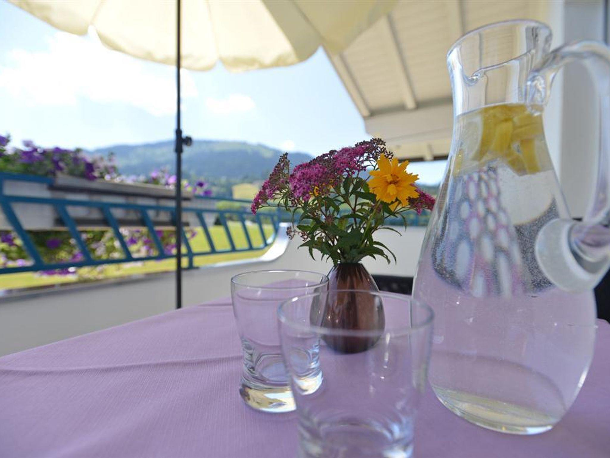Die Wohnung ist geschmackvoll und gemütlich eingerichtet und man fühlt sich rundum wohl. Der weite Blick vom Balkon auf die umliegenden Berge ist einfach nur schön.