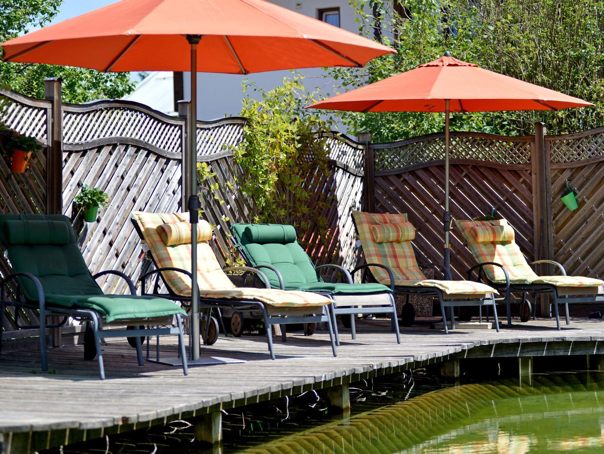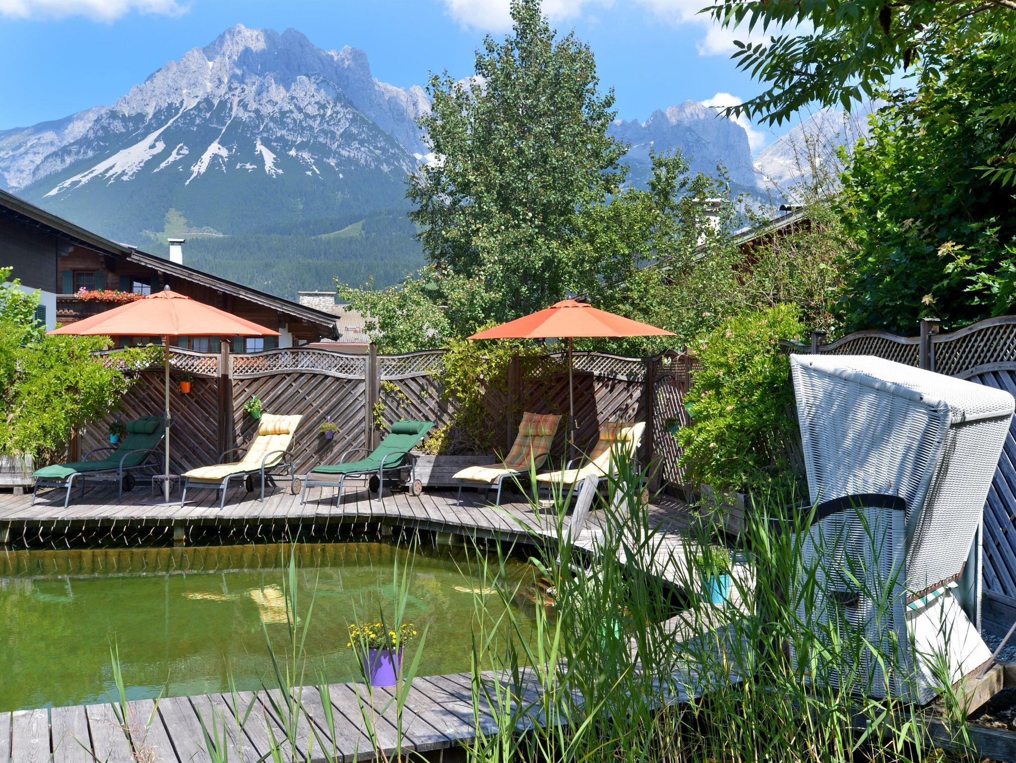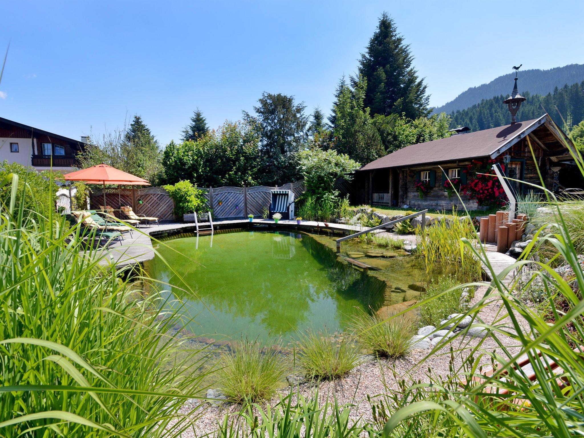 Als Besonderheit können unsere Gäste den klaren, erfrischenden Schwimmteich in unserem Haupthaus, der Alpenresidenz Haus Unterrainer, mitnützen.