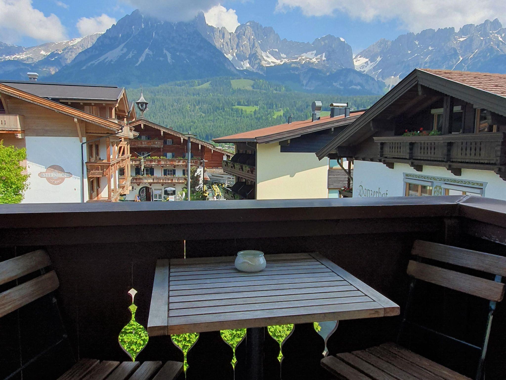 Genießen Sie die Terrasse mit Blick zum Wilden Kaiser.