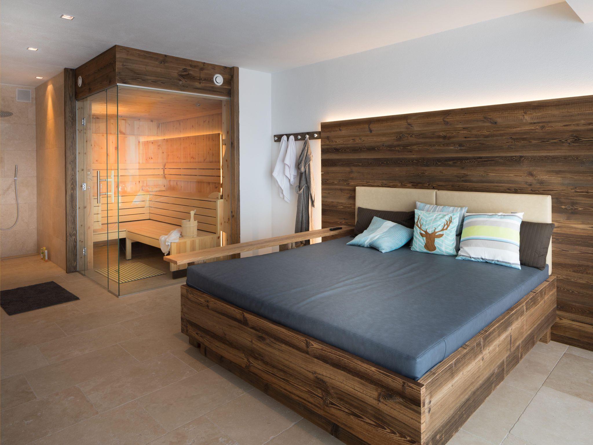 Wellness & Entspannung Im Erdgeschoss erwartet Sie ein privater Wellnessbereich mit finnischer und Bio-Sauna, Regendusche, Relaxbett und TV – ideal, um nach einem aktiven Tag in den Bergen zu entspannen.