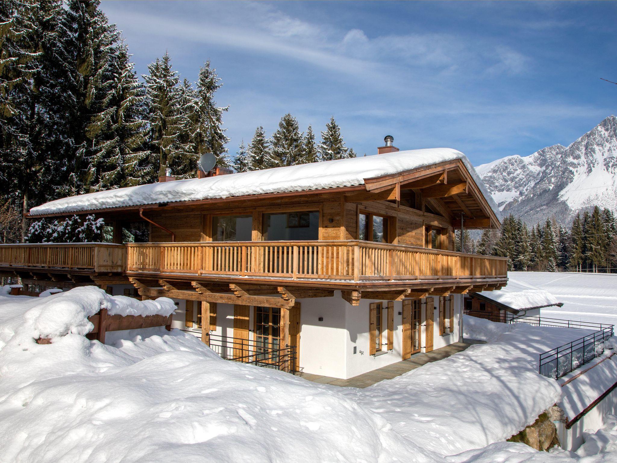 Der rundum verlaufende Balkon bietet atemberaubende Ausblicke auf den Wilden Kaiser – perfekt zum Frühstücken in der Sonne oder für einen Aperitif bei Sonnenuntergang.