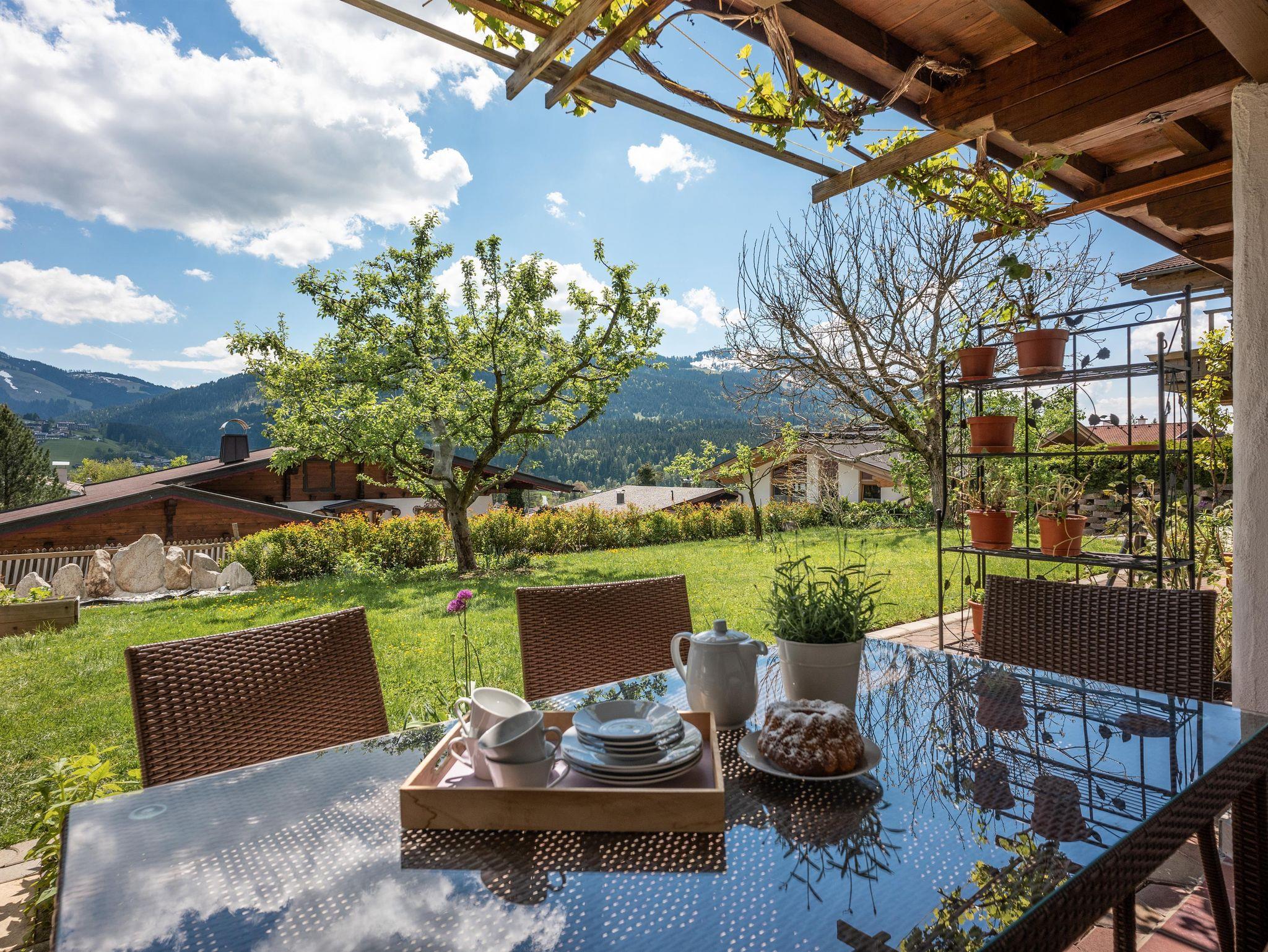 Unser Haus befindet sich am Fuße des Wilden Kaisers mit herrlichem Blick auf die umliegende Bergwelt.