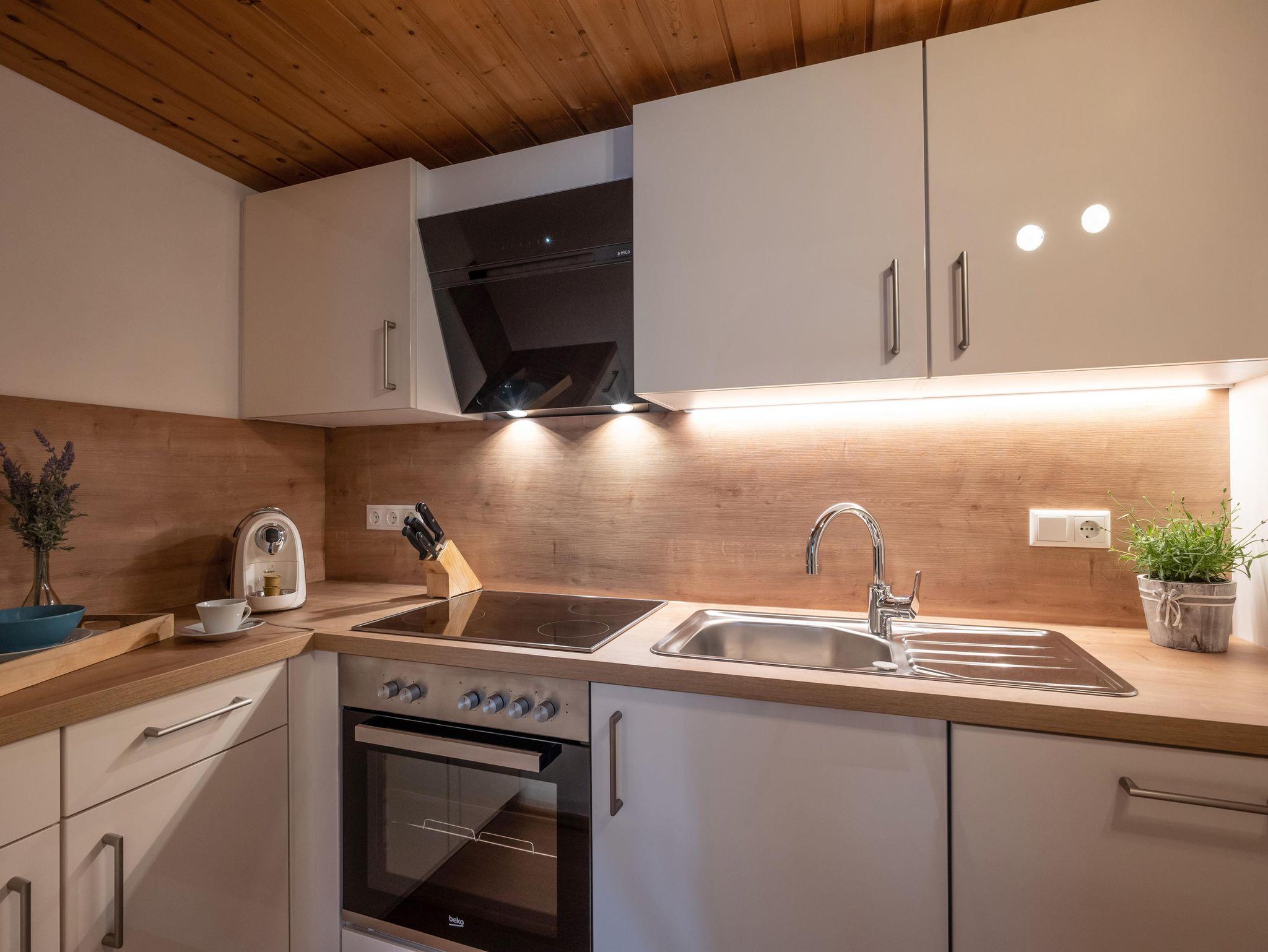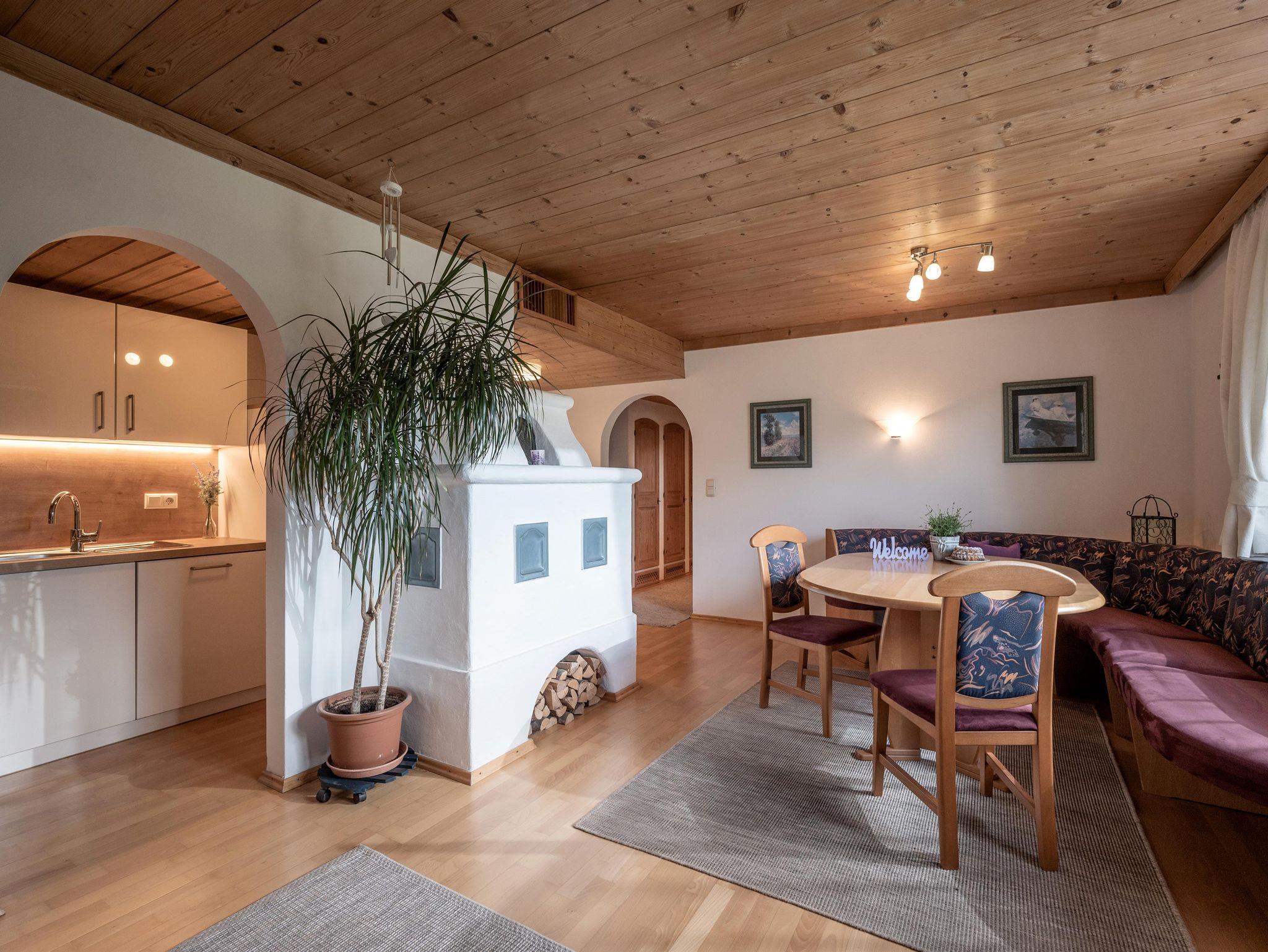 Die Wohnung verfügt über ein Wohnesszimmer mit gemauerten Ofen und gemütlicher Couchecke. Die Küche ist komplett eingerichtet mit Geschirrspüler, Mikrowelle und Cafissimo Kapselmaschine. Ein Schlafzimmer ist mit einem Doppelbett ausgestattet,1 Badezimmer mit seperatem WC. Das zweite Schlafzimmer beinhaltet zwei Einzelbetten und das dritte Schlafzimmer hat einen gesondereten Eingang mit zwei Einzelbetten und extra Bad.