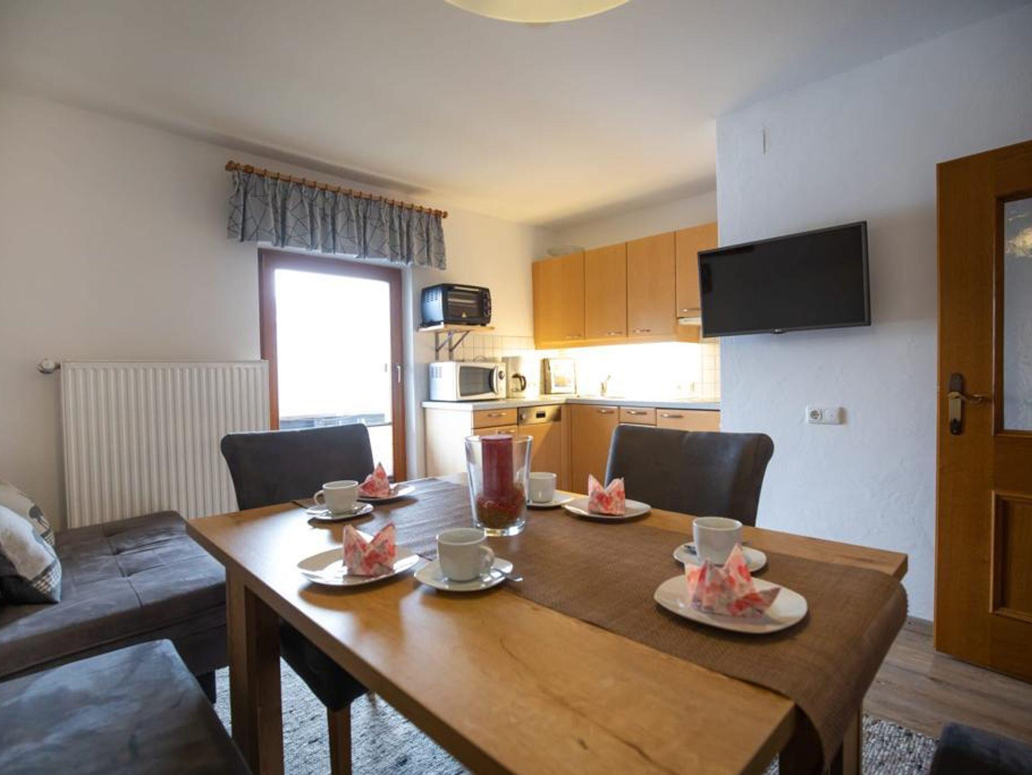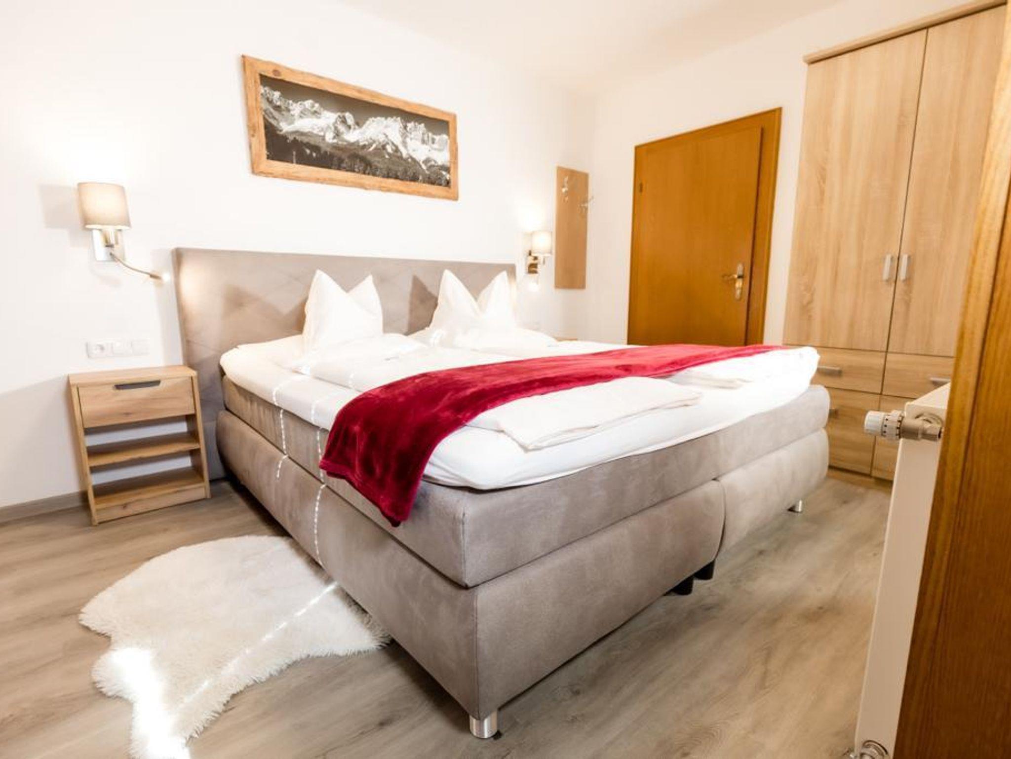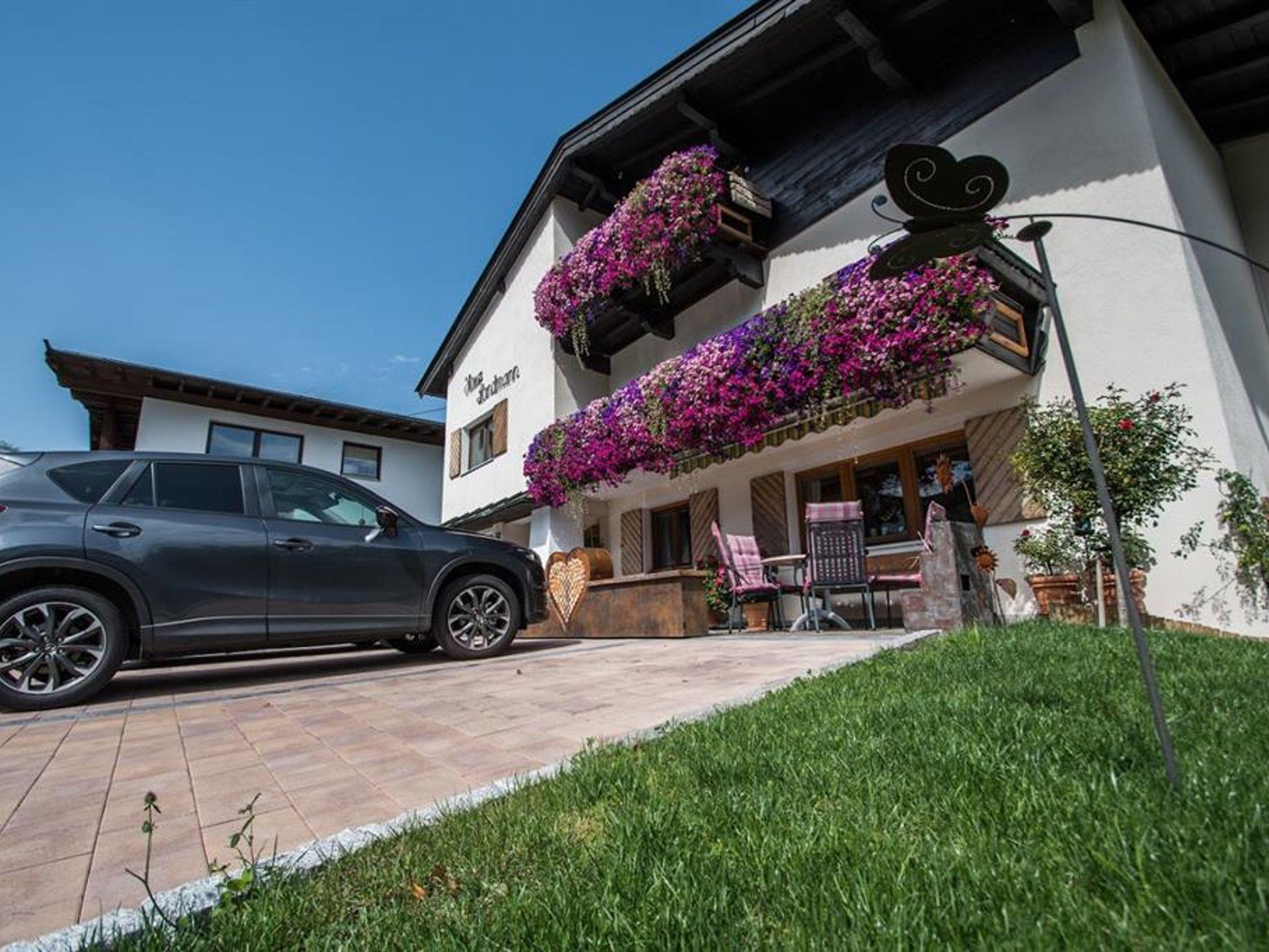 Das Appartement befindet sich im ersten Stock mit Balkon südwestseitig mit Rundum-Blick auf den Hartkaiser, die Marienkapelle und den Wilden Kaiser.