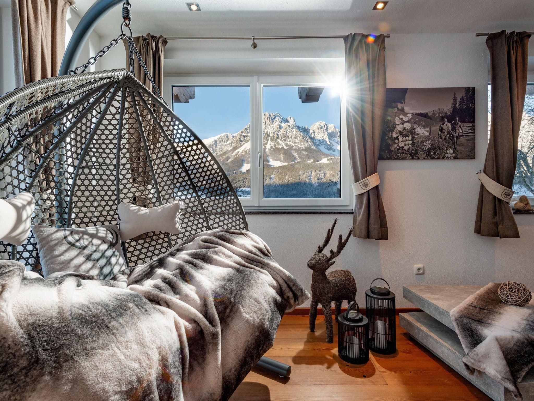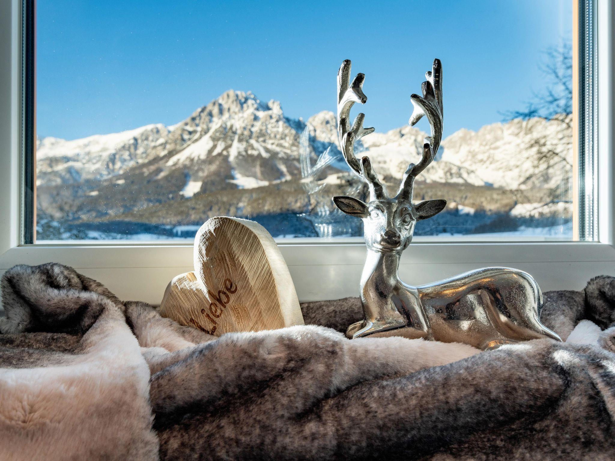 Vor dem Appartementhaus entfaltet sich ein Ausblick, der seinesgleichen sucht: Weite Wiesen dehnen sich vor Ihnen aus, und der Wilde Kaiser erhebt sich majestätisch wie ein lebendiges Panorama in den Himmel. In erster Reihe zur Natur spüren Sie die kraftvolle Präsenz der Berge und genießen einen Anblick, der jeden Moment besonders macht. Hier beginnt die Schönheit der Alpen direkt vor Ihrer Tür.