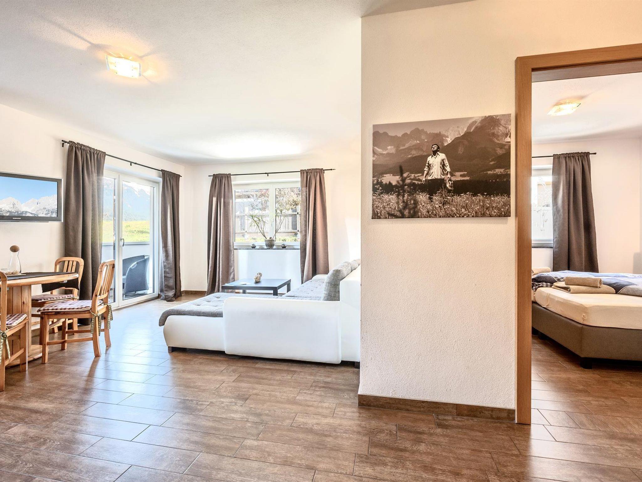 Die Lage der Wohnung war gut, man hatte es nicht weit zur Hartkaiserbahn und auch in den Ort selbst war es nicht weit.