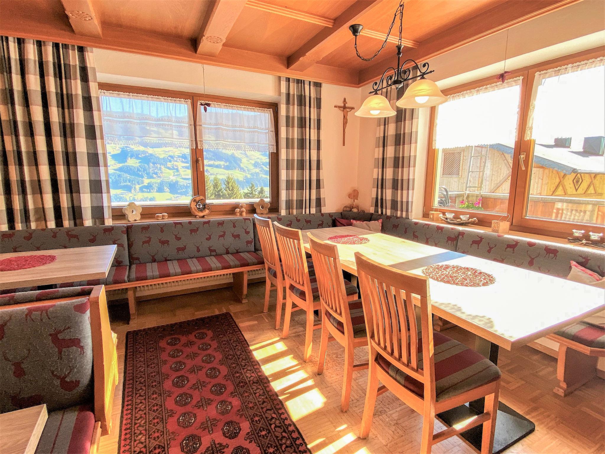 6-Zimmer-Wohnung 150 m2 auf 2 Stockwerken. Einfach und rustikal eingerichtet: grosses Esszimmer mit Sat-TV (Flachbildschirm). Küche (Backofen, Geschirrspüler, 4 Glaskeramikplatten, Wasserkocher, elektrische Kaffeemaschine) mit kleinem Esstisch. Obergeschoss: 4 Doppelzimmer, jedes Zimmer mit Waschbecken. Ausgang zum Balkon. Sep. WC, 2 Bäder/Duschen/WC. Heizung. Teppichboden. Balkon. Balkonmöbel. Schöne Panoramasicht. Zur Verfügung: Kinderhochstuhl, Babybett. Internet (WLAN, gratis). Bitte beachten: Nichtraucher-Haus. Im EG befindet sich noch eine Wohnung, die von anderen Gästen benutzt wird.