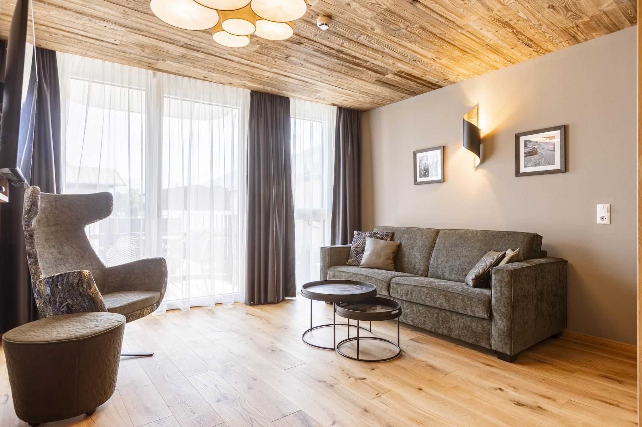 In der 66 m² großen Superior Ferienwohnung fühlen sich bis zu 2 Personen wohl. Ihre Ferienwohnung verfügt über ein Schlafzimmer (Doppelbett und Einzelsofa), zwei Badezimmer mit Dusche und WC (Haarföhn vorhanden), eine Wohnbereich mit Küchenzeile und einen Balkon. Erholsamen Schlaf genießen Sie im bequemen Doppelbett und auf dem Einzelsofa im Schlafzimmer, im liebevoll dekorierten Wohn-Essbereich finden auf dem Doppelschlafsofa zwei Personen Platz. Die Küche im Superior Apartment ist voll ausgestattet. Das heißt: Besteck und (Koch-) Geschirr ist vorhanden, Cerankochfeld, Backofen, Mikrowelle, Kühlschrank mit Gefrierfach und Geschirrspüler gehören ebenso zur Ausstattung wie Toaster, Wasserkocher und die Kaffeemaschine (Nespresso-Kapselmaschine). Ein kleines ALPS RESORTS Starterset mit Geschirrspültab, Geschirrspülmittel (20 ml), Schwämmchen, Müllbeutel, Putz- und Geschirrtuch steht bei Ihrer Anreise bereit. Bei jeder Unterkunft ist ein zugewiesener Parkplatz in der Tiefgarage dabei, auf dem Sie Ihr Auto während Ihres Aufenthaltes abstellen können. WLAN ist kostenlos. Alle Bilder sind Beispielbilder. Jede Ferienwohnung ist individuell eingerichtet. Die Zillertal Suites Fügen by ALPS RESORTS: • Ferienwohnungen in Fügen im Zillertal, Tirol • Wellnessbereich mit beheiztem Outdoor-Pool und Saunen • 850 m zur Spieljochbahn, 750 m zur Erlebnistherme • Gästekarte Erste Ferienregion Zillertal inklusive • Kostenfreier Tiefgaragenplatz vorhanden