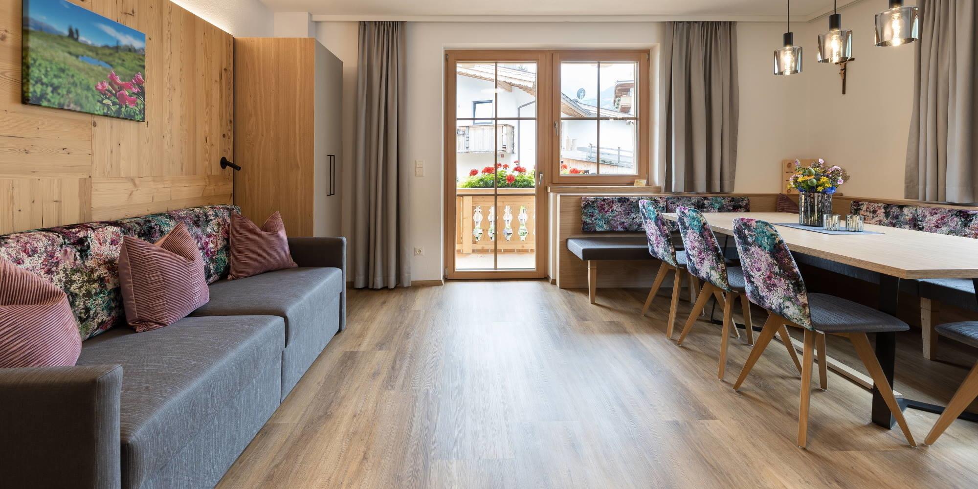 In der Wohnung befindet sich eine Infrarotkabine, die Sie an kalten Tagen oder nach dem Skitag auf der Piste wärmt. Eines der beiden Schlafzimmer bietet ein eigenes Bad mit Du/WC. Im Hof gibt es eine Grillecke mit Grill und angrenzend einen kleinen Spielplatz für die Kids. Alle Wohnungen sind liebevoll und gemütlich im Altholzstil eingerichtet. Das Appartementhaus befindet sich in absolut zentraler Lage, Nähe Skigebiet. Die Bushaltestelle befindet sich auf der gegenüberliegenden Straßenseite, theoretisch können Sie den Urlaub ohne Auto genießen. Der Bahnhof ist fußläufig zu erreichen und bietet Bahnfahrten für Tagesausflüge bis Mayrhofen an.