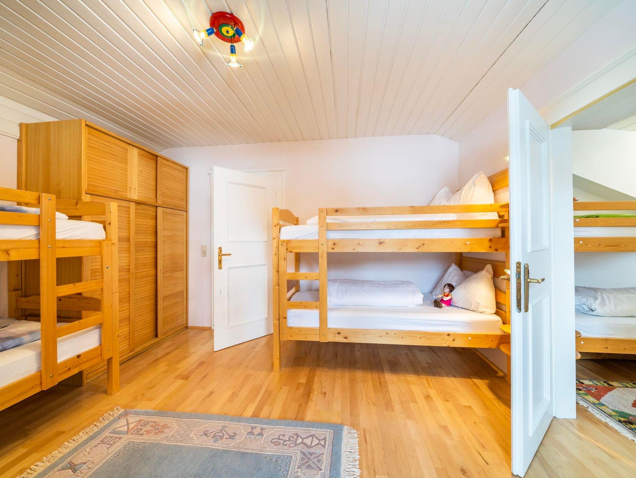 Im 1. Stock stehen euch zwei schöne große Schlafzimmer und ein Kinderzimmer mit Stockbetten zur Verfügung.