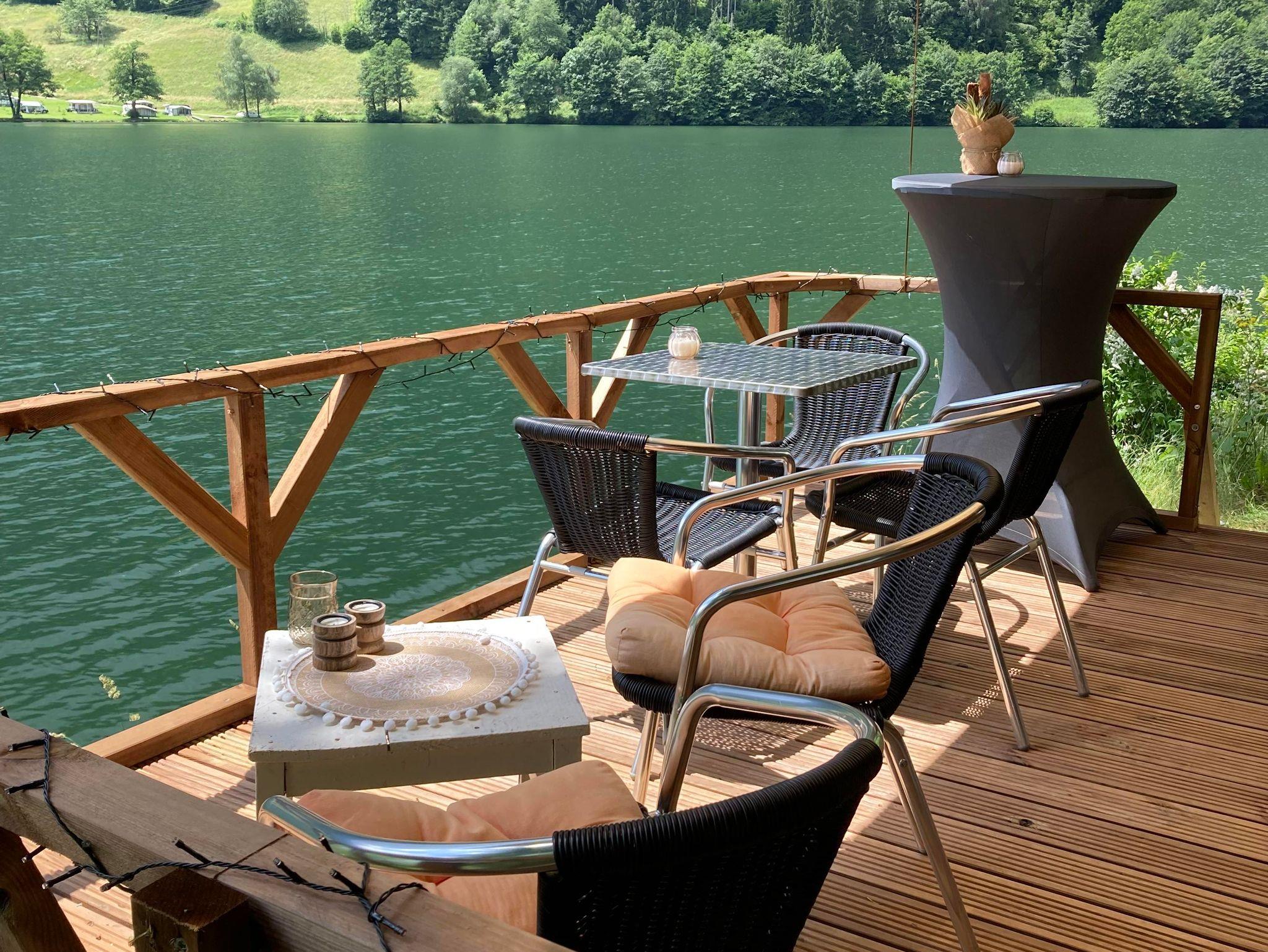 Studio Appartement verfügt über einen großzügigen Balkon mit Sitzgelegenheit und einem wunderschönen Blick auf den Afritzer See und den Mirnock.