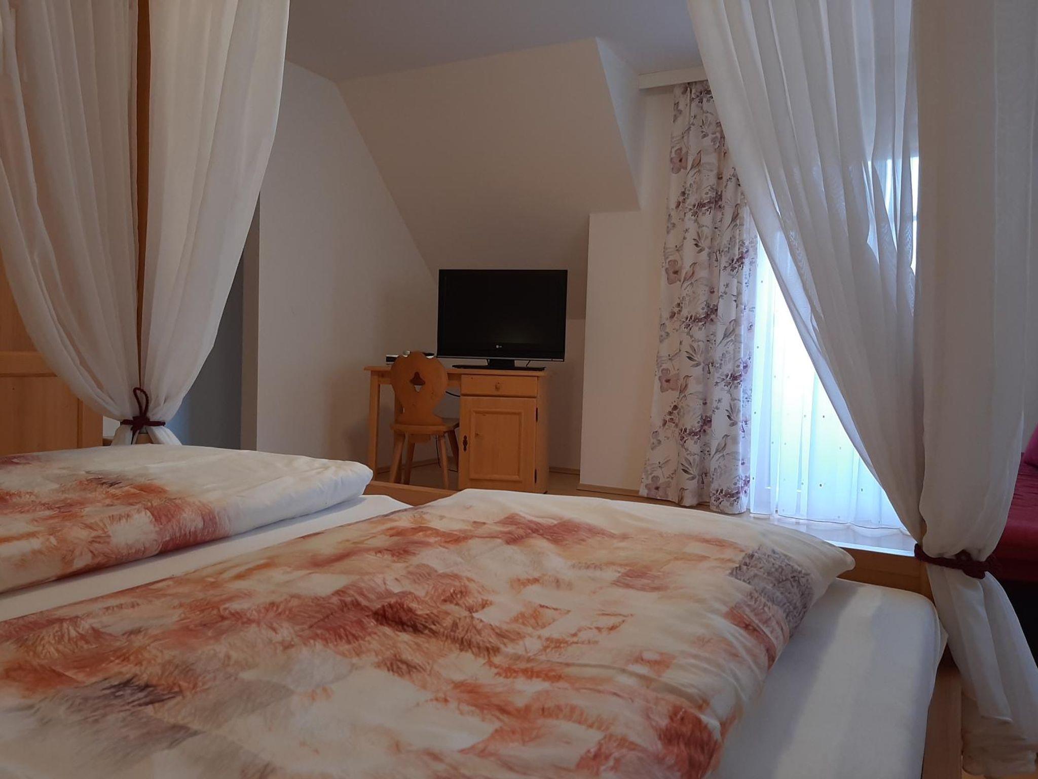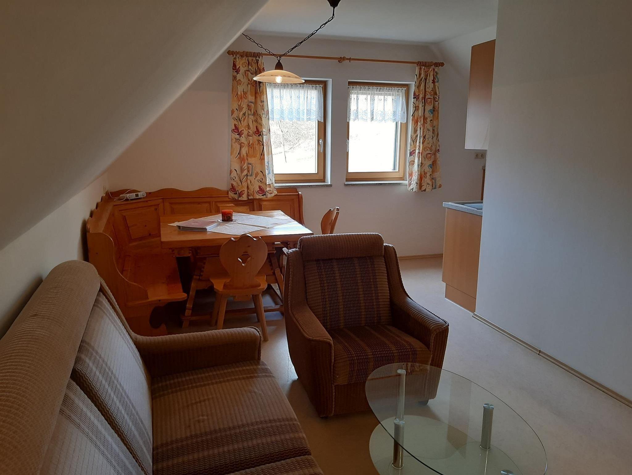 Mit einem bezaubernden Himmelbettzimmer lädt unsere großzügig angelegte Ferienwohnung im ersten Stock zum Wohlfühlen und Entspannen ein. Alle beiden Schlafräume und das Kinderzimmer sind mit Vollholzmöbeln bestens ausgestattet, zudem gehören zwei Badezimmer, eine Küche mit freundlichem Wohnbereich und zwei Balkone dazu- ein Traum- tipp für Familien! In beiden Zimmern gibt es einen Fernseher mit Sat- TV. Im Badezimmer sind reichlich Handtücher und die Betten sind bezogen. W- Lan ist für alle frei.