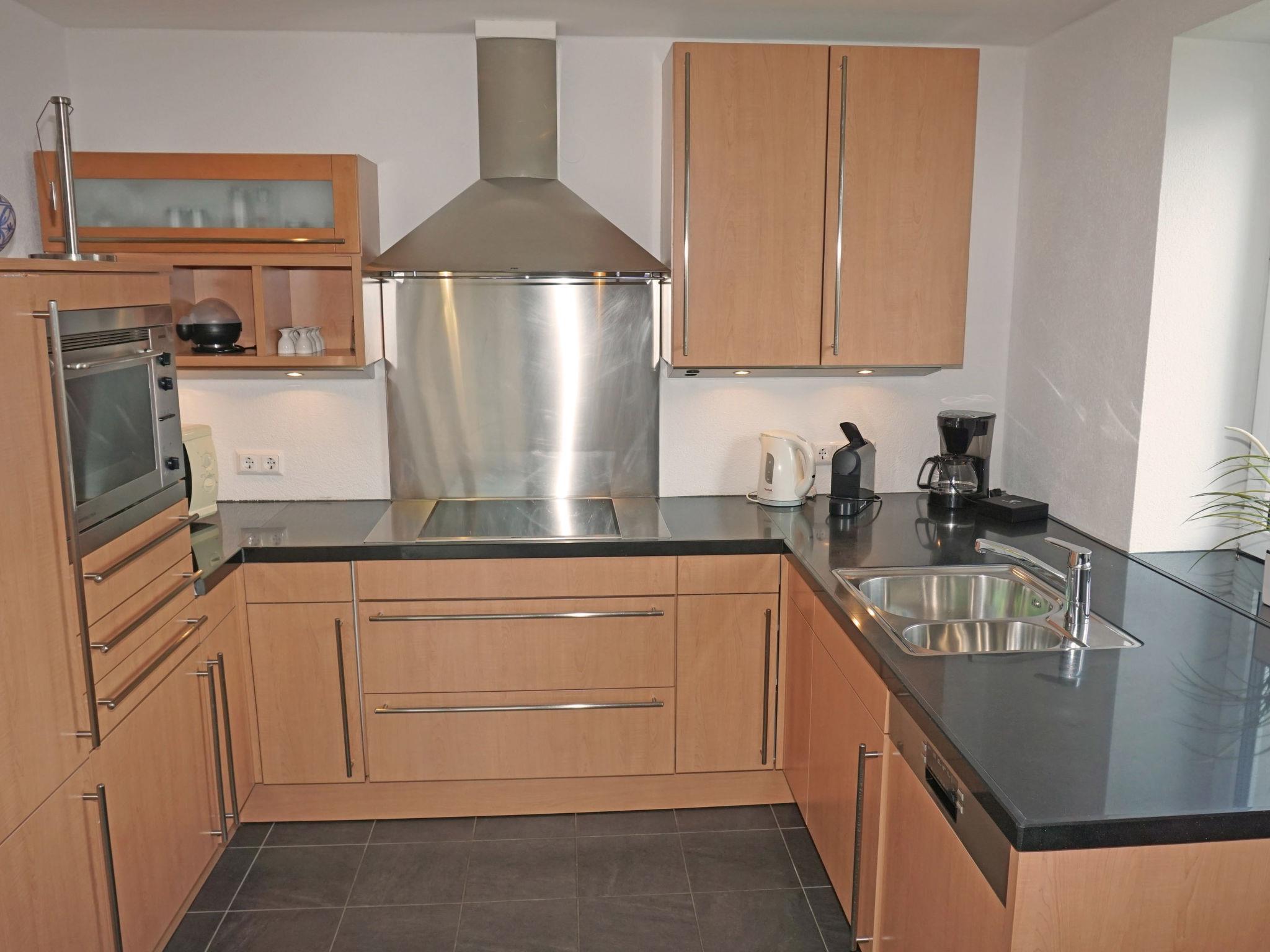 4-Zimmer-Wohnung 105 m2 im 1. Stock. Geräumig, komfortabel eingerichtet: Eingang. 2 Doppelzimmer. 1 Doppelzimmer mit Dusche/WC. Ausgang zur Terrasse. Grosses Wohn-/Esszimmer mit Esstisch und Kabel-TV (Flachbildschirm). Ausgang zur Terrasse. Offene Küche (Backofen, Geschirrspüler, 4 Glaskeramikplatten, Mikrowelle, elektrische Kaffeemaschine). Dusche, sep. WC. Grosse Terrasse 22 m2. Terrassenmöbel. Zur Verfügung: Safe, Haartrockner. Internet (Wireless LAN, gratis). Bitte beachten: Nichtraucher-Unterkunft. Rauchmelder.