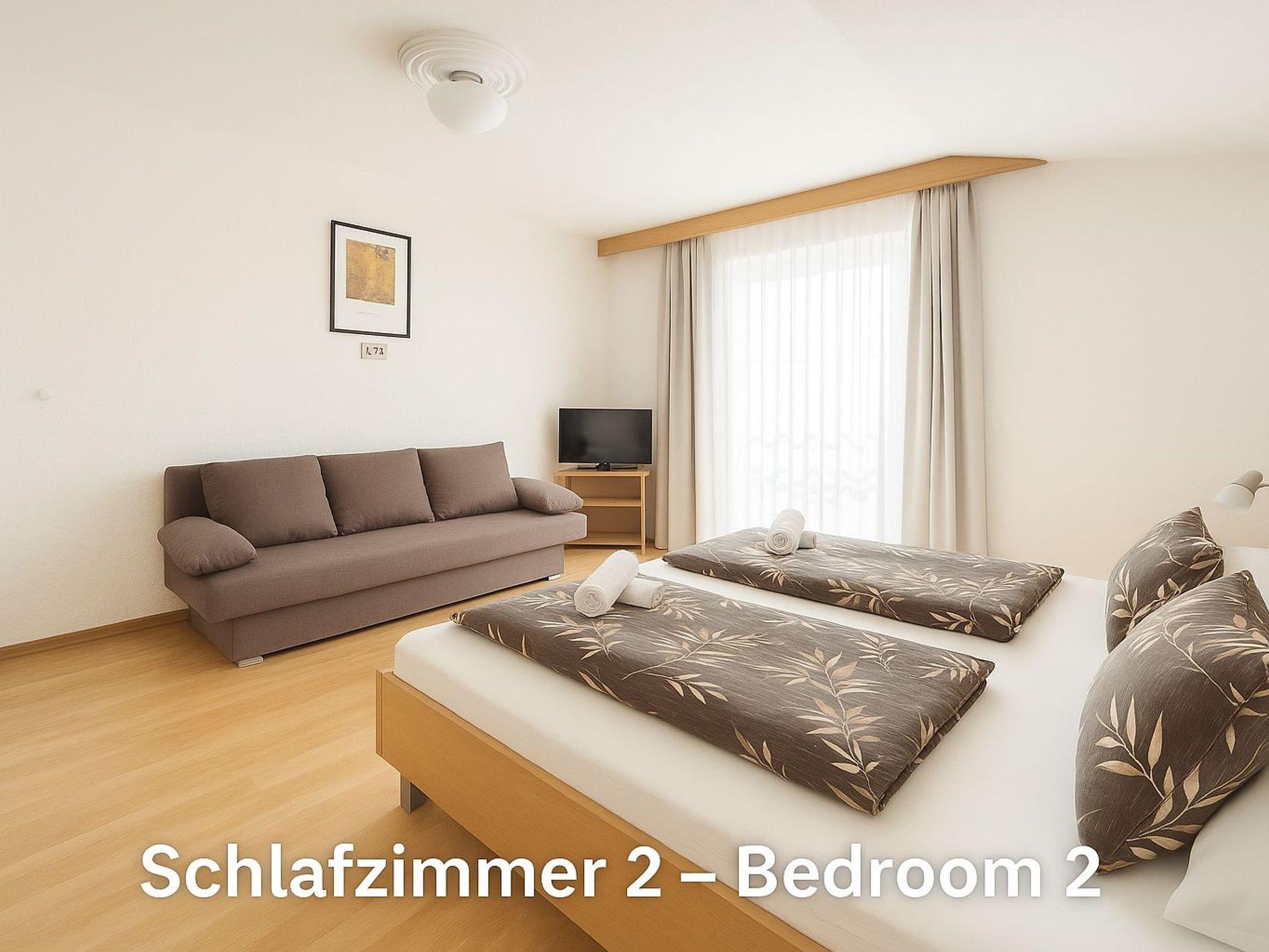 Schlafzimmer: ein Doppelbett 180 x 200 cm, ein Einzelbett 90 x 200 cm