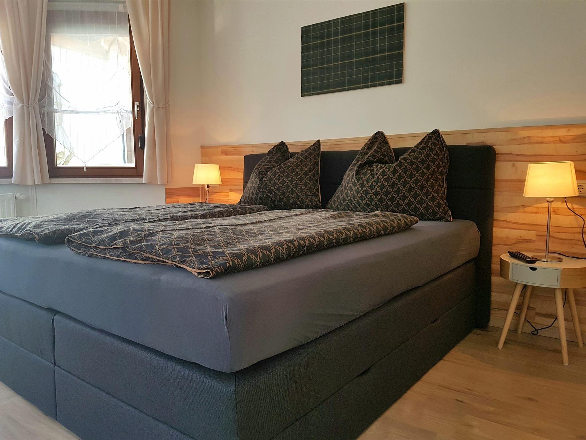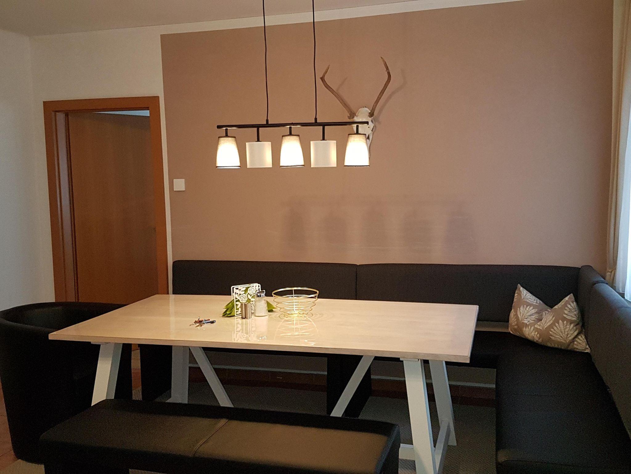 Die Ferienwohnung Gletschermühle mit 125qm² bietet Platz für 6 bis 12 Personen. Es sind 3 Schlafzimmer mit Doppelbett, einem Schlafsofa sowie TV und KLeiderschrank ausgestattet. Das 4. Schlafzimmer ist mit 2 Einzelboxspringbetten und Schlafsofa ausgestattet. Sie haben 2 Bäder, beide mit modernen Duschen, Waschplatz, Seife und Shampoo, Fön und WC. Die Wohnung verfügt über eine separate voll ausgestattete Küche mit Fenster und einem großzügigem Wohn- Essbereich. Dort befindet sich ein Kamin, der in kälteren Tagen eine kuschelige Atmosphäre schafft. Ein Smart TV mit Sky TV Zugang runden den Wohnbereich ab. Vom Wohnzimmer aus, gelangen Sie auf den neuen Balkon mit Südblick auf die Berge. Die Wohnung befindet sich im Obergeschoß des Landhauses und verfügt über einen separatem Eingang.