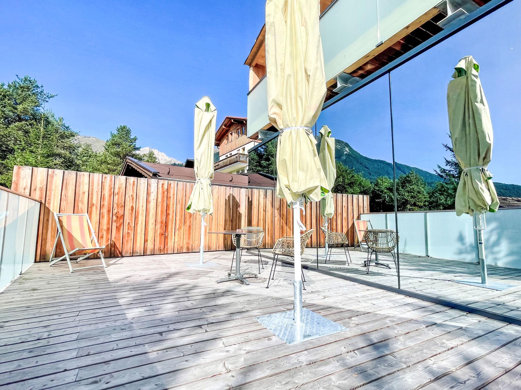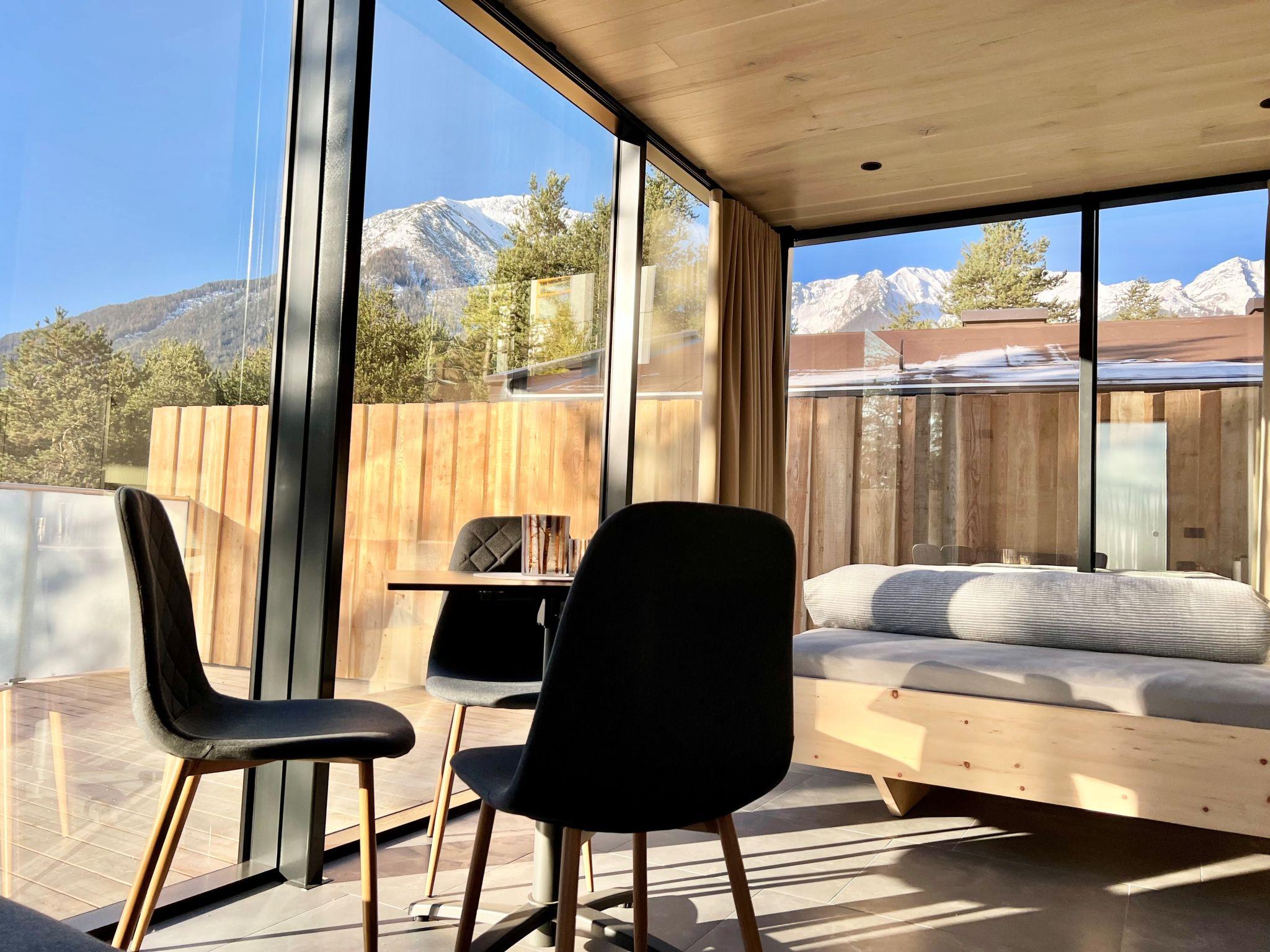 Modernes, luxuriöses Chalet "Panorama Lodge". 5 Häuser im Ferienresort. Im Ortsteil Hoch-Imst, 1.4 km vom Zentrum von Imst, sonnige Lage am Hang, 400 m vom See, 300 m vom Skigebiet, in einer Sackgasse, im Wald. Im Hause: Zentralheizung, Klimaanlage. Treppenweg bis zum Haus. Parkplatz (überdacht). Supermarkt 2 km, Restaurant 400 m, Bushaltestelle "Imst Hochimst" 280 m, Bahnstation "Imst/Pitztal Bahnhof" 5.5 km, Freibad 2 km, Badesee 400 m. Golfplatz (27 Loch) 30 km, Tennis 300 m, Wanderwege ab Haus 400 m, Skisportanlagen, Schlittelbahn, Langlaufloipe, Eisfeld, Kinderspielplatz 300 m. Nahe gelegene Sehenswürdigkeiten: Längste Alpenachterbahn der Welt 300 m, Area 47 17 km, Aqua Dom Längenfeld 39 km. Bekannte Skigebiete sind gut erreichbar: Hoch-Imst 300 m, Hochzeiger-Jerzens 19 km, Ötz-Hochötz 21 km. Wandergebiete: Starkenberger Panoramaweg 400 m, Rosengartenschlucht 400 m. Bitte beachten: Weitere Unterkünfte sind buchbar. Ferienwohnung Ref. AT6460.615+501 befindet sich auf dem gleichen Grundstück. In dieser Anlage zusätzlich mietbar: 1 Haus, 1 Bungalow, 2 Chalets. Solea, Luna, Sky und Skylight. Zahlreiche Vergünstigungen mit dem Urlaubspass (Infos unter www.imst.at).