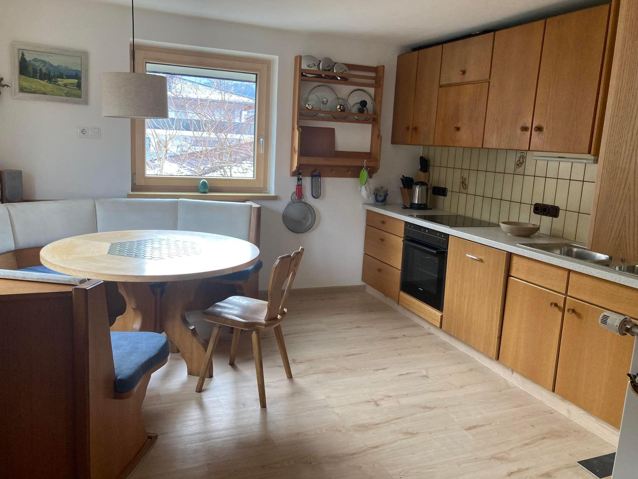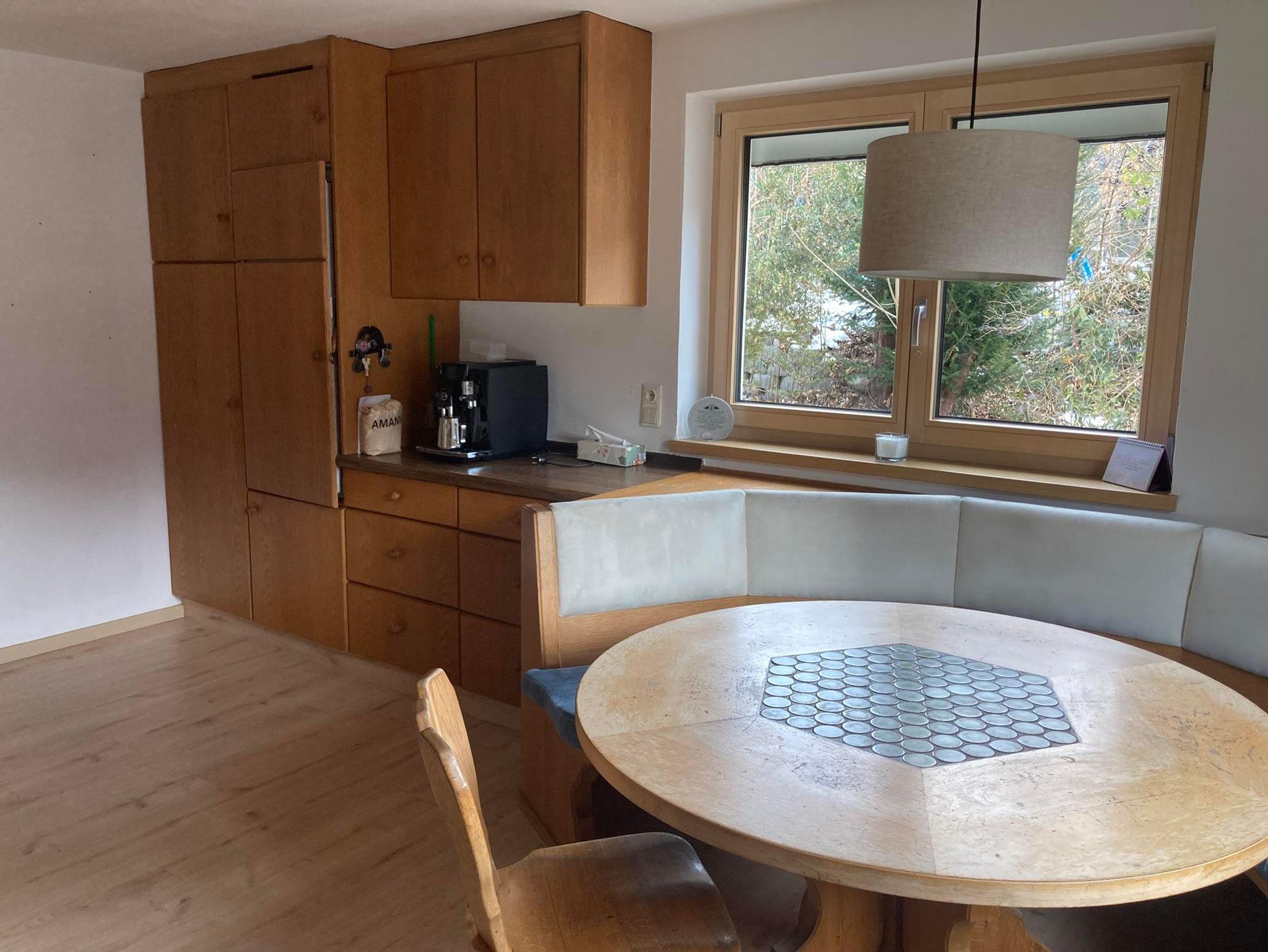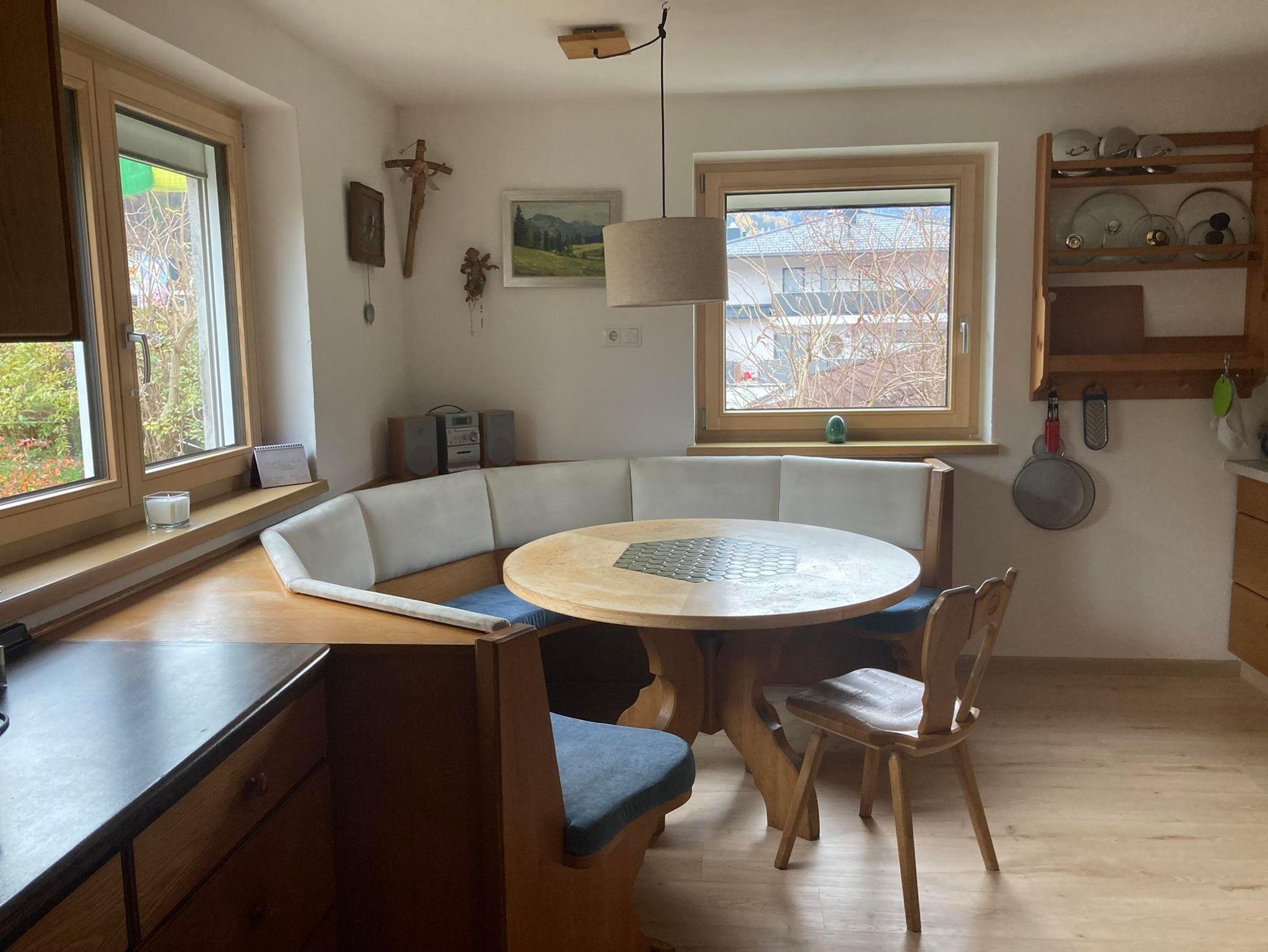 Ein echtes Highlight ist der lichtdurchflutete, 30 m² große Wintergarten mit privater Infrarotkabine – perfekt zum Entspannen nach einem Tag in den Bergen, inklusive Bergblick. Die geräumige Einbauküche ist voll ausgestattet mit Kühlschrank, Elektroherd, Backofen, Kaffeemaschine, Wasserkocher sowie ausreichend Geschirr und Besteck. Das Badezimmer verfügt über eine Badewanne mit Duschwand, Waschbecken und WC.