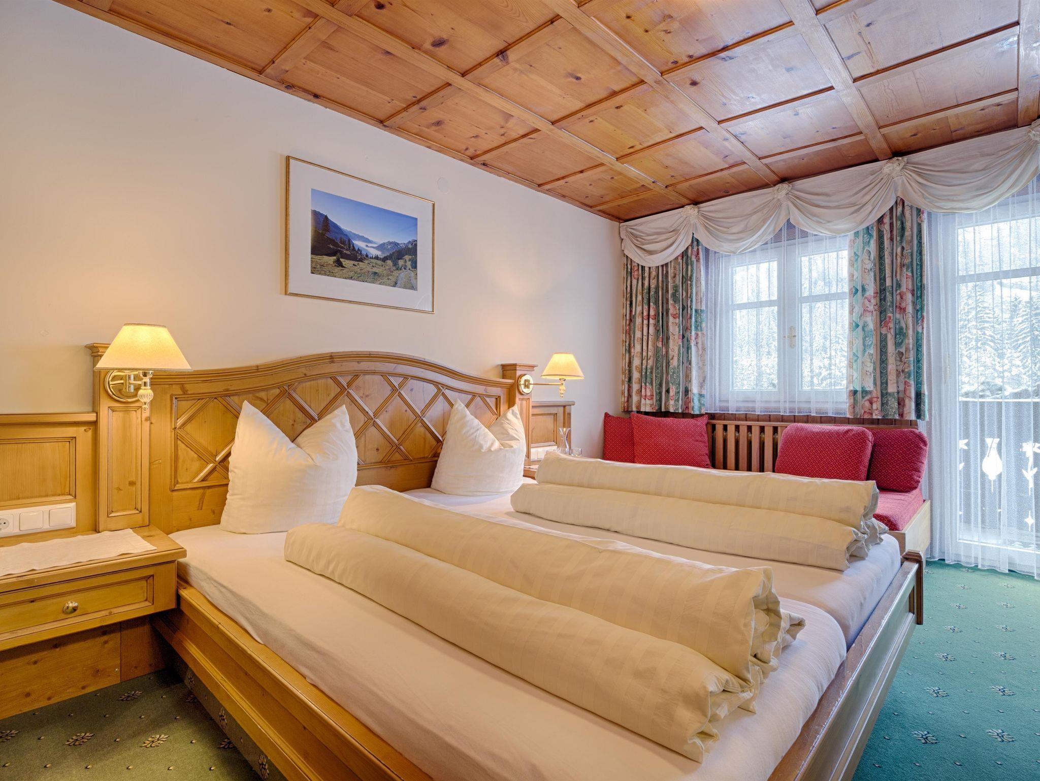 Zwei- oder Dreibettzimmer Arlberg mit Dusche, WC, Fön, SAT-TV, W-LAN, Selbstwahltelefon, Safe und teilweise Balkon