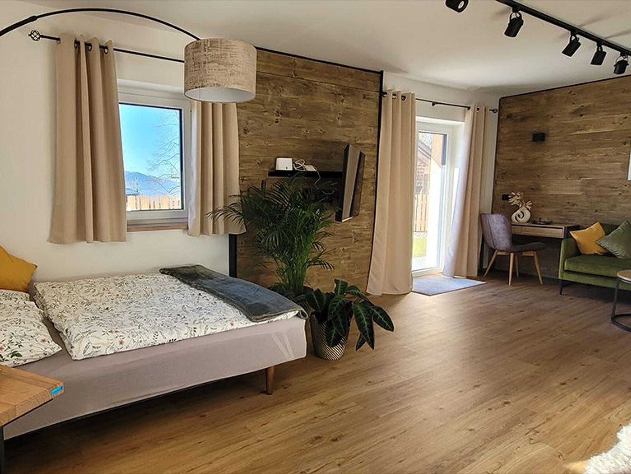 Genießen Sie gemütliche Abende auf der Terrasse mit Bergblick oder entspannen sie in der Hauseigenen Sauna mit Panoramablick auf Berg und See! Genießen Sie gemütliche Urlaubstage in dieser einzigartigen Ferienwohnung.