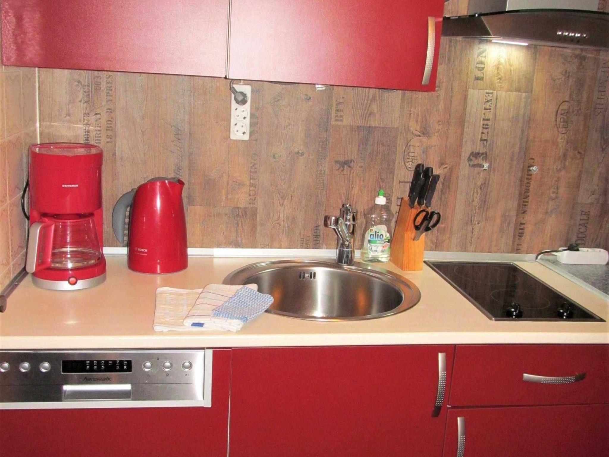 + geschmackvolle Küchenzeile inkl. Wasserkocher, kl. Backofen, Kaffeemaschine uvm. (nicht geeignet zum Braten oder Frittieren!)