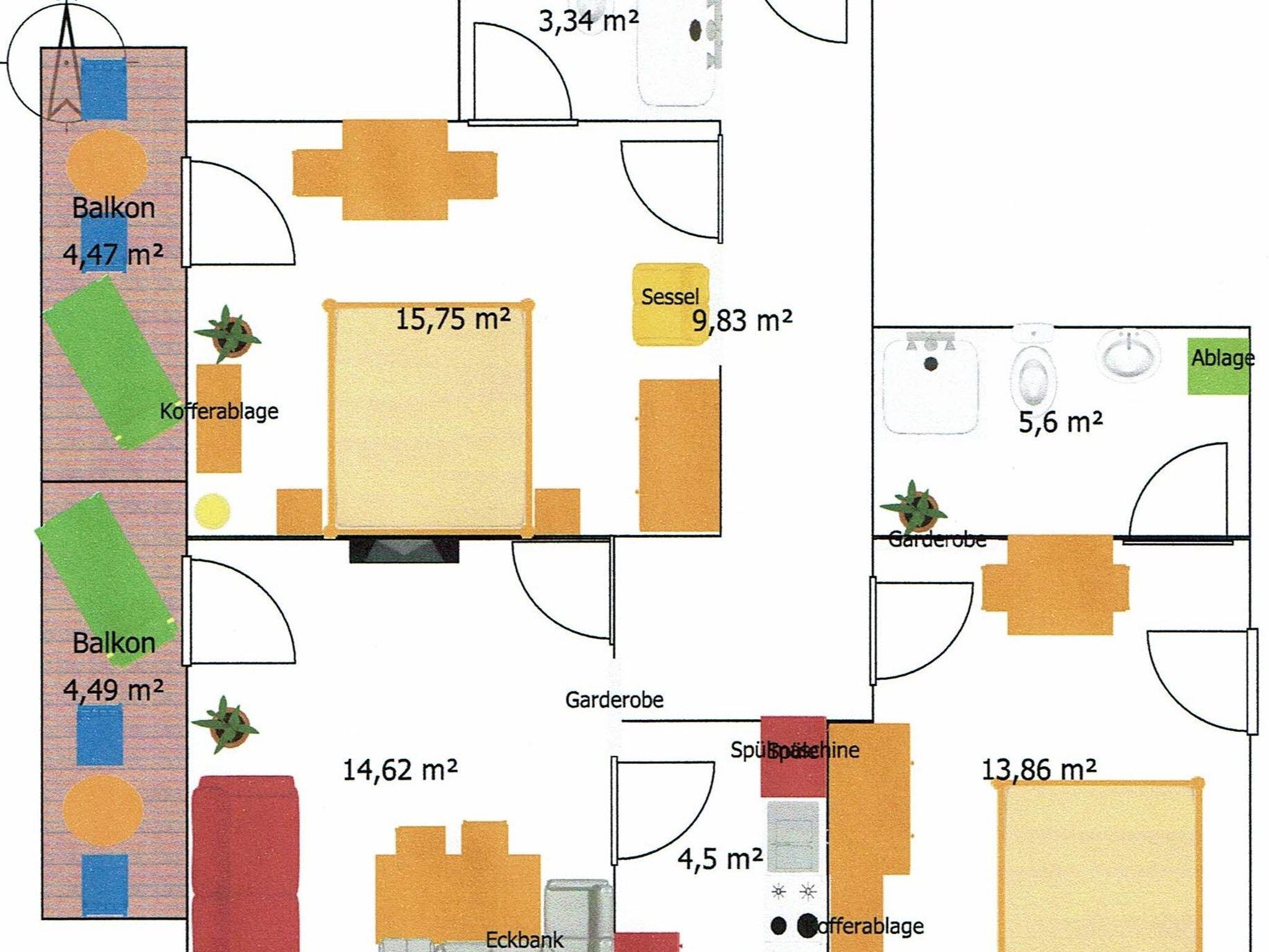 70 qm großes 3 Zimmer Appartement + west-/seeseitige Balkone mit schönem Berg- und Seeblick im 2. (letzten) OG / DG - ideal für Ihren Familienurlaub mit Kindern