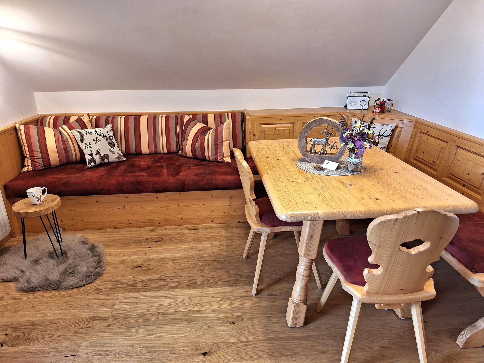 Liebevoll eingerichtete Ferienwohnung 55m² mit 2 getrennten Schlafzimmern, Südbalkon, Parkettböden, helle Holzmöbel, Du und WC getrennt, Vorraum mit Garderobe, voll ausgestattete Küche mit Geschirrspüler, Radio, Sat-Tv, W-lan kostenlos, Bettwäsche, Handtücher und Geschirrtücher inklusive.