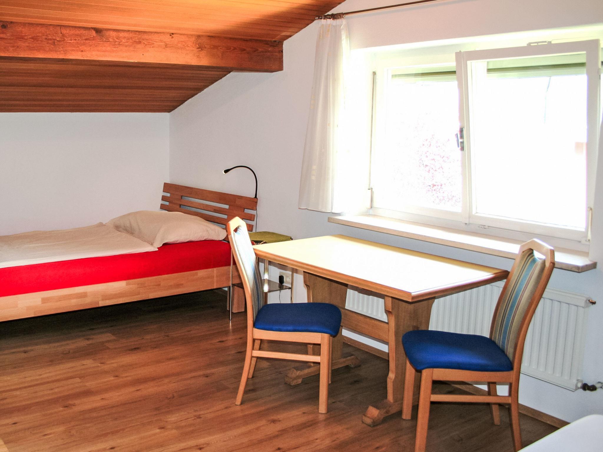 4-Zimmer-Wohnung 110 m2 auf 2 Stockwerken, im Obergeschoss. Hell, teilweise abgeschrägt, gemütlich eingerichtet: Wohnzimmer mit Kabel-TV. 1 Doppelzimmer. Ausgang zur Terrasse. Küche (Backofen, Geschirrspüler, 4 Glaskeramikplatten, Mikrowelle, elektrische Kaffeemaschine) mit Essecke und Radio. Ausgang zur Terrasse. Bad/Dusche, sep. WC, Doppelwaschbecken. Obergeschoss: 1 grosses Doppelzimmer mit 1 Bett (90 cm, Länge 200 cm), Kabel-TV. 1 grosses Doppelzimmer mit 1 Doppeldiwanbett und Waschbecken. Grosse Terrasse 18 m2. Terrassenmöbel. Schöne Sicht auf die Berge, den Garten und die Ortschaft. Zur Verfügung: Waschmaschine, Safe, Kinderhochstuhl, Babybett. Internet (WLAN, gratis). Bei Belegung mit weniger Personen als der maximalen Personenzahl stehen nicht alle Schlafzimmer zur Verfügung.