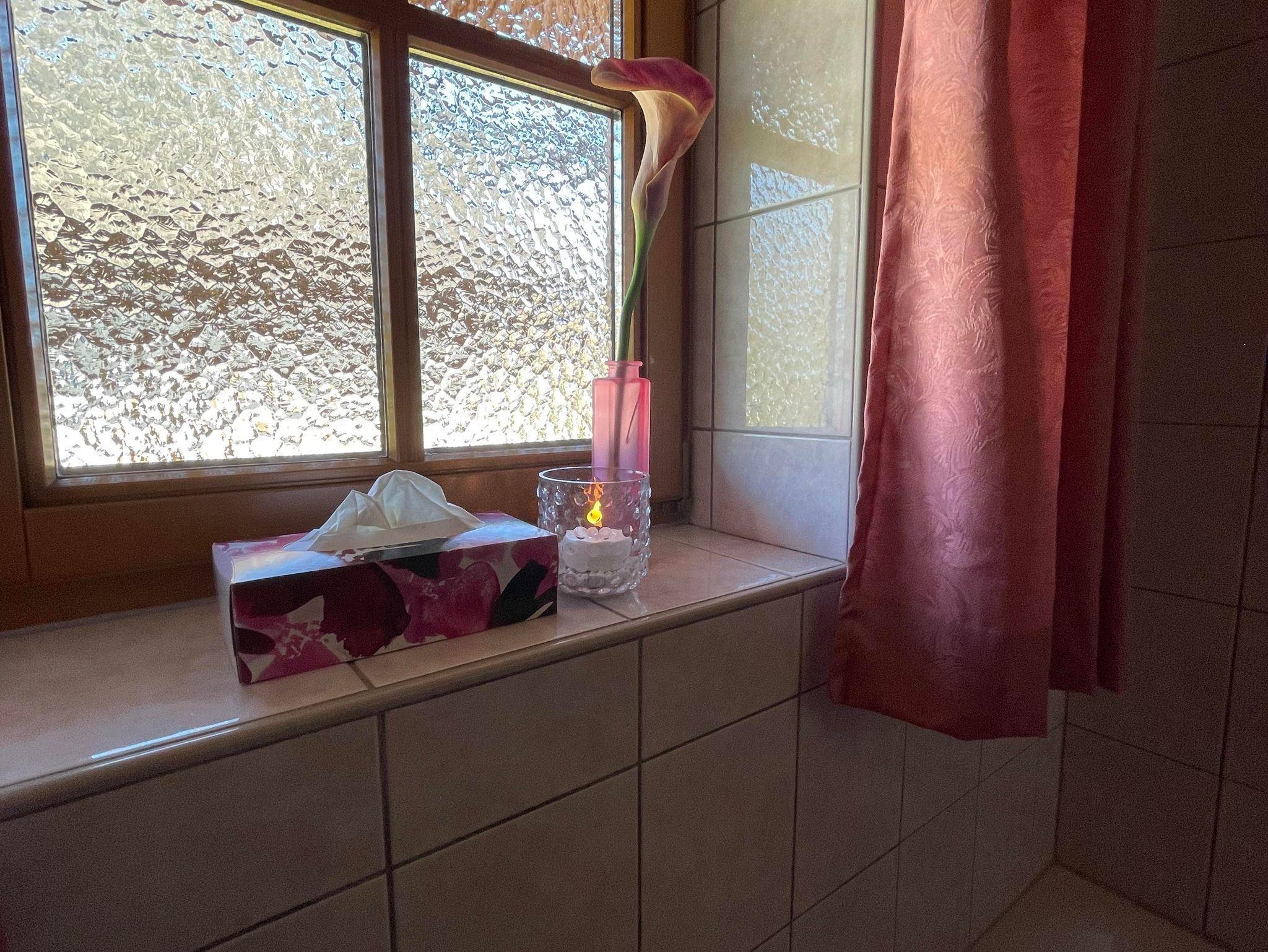 Unser Doppelzimmer und Dreibettzimmer sind gemütlich eingerichtet, das Badezimmer ist ausgestattet mit einer Dusche, eigener Badewanne und nebenan seperates WC. Allergiker Wohnung nur Fliesen und Parkett!