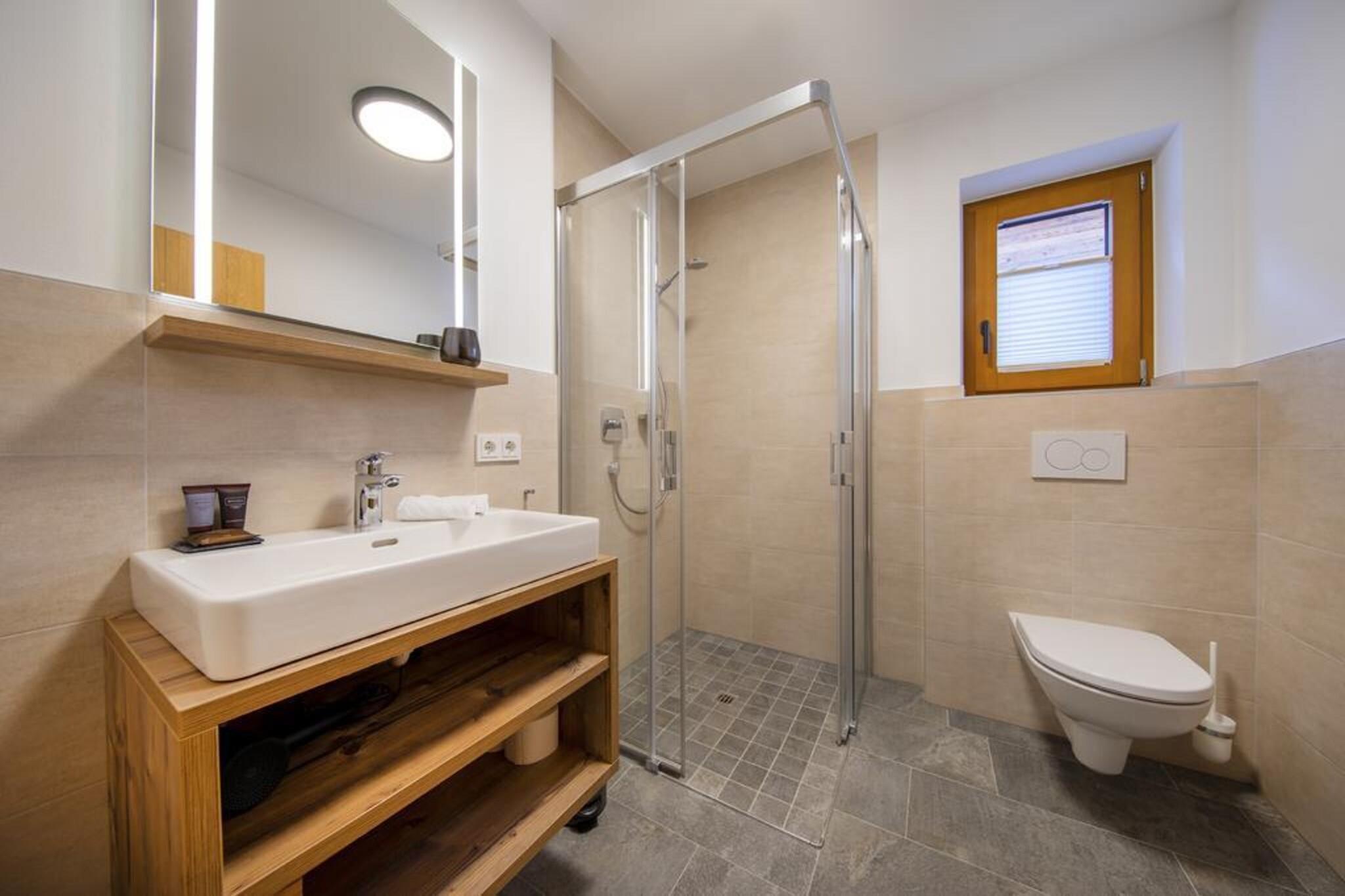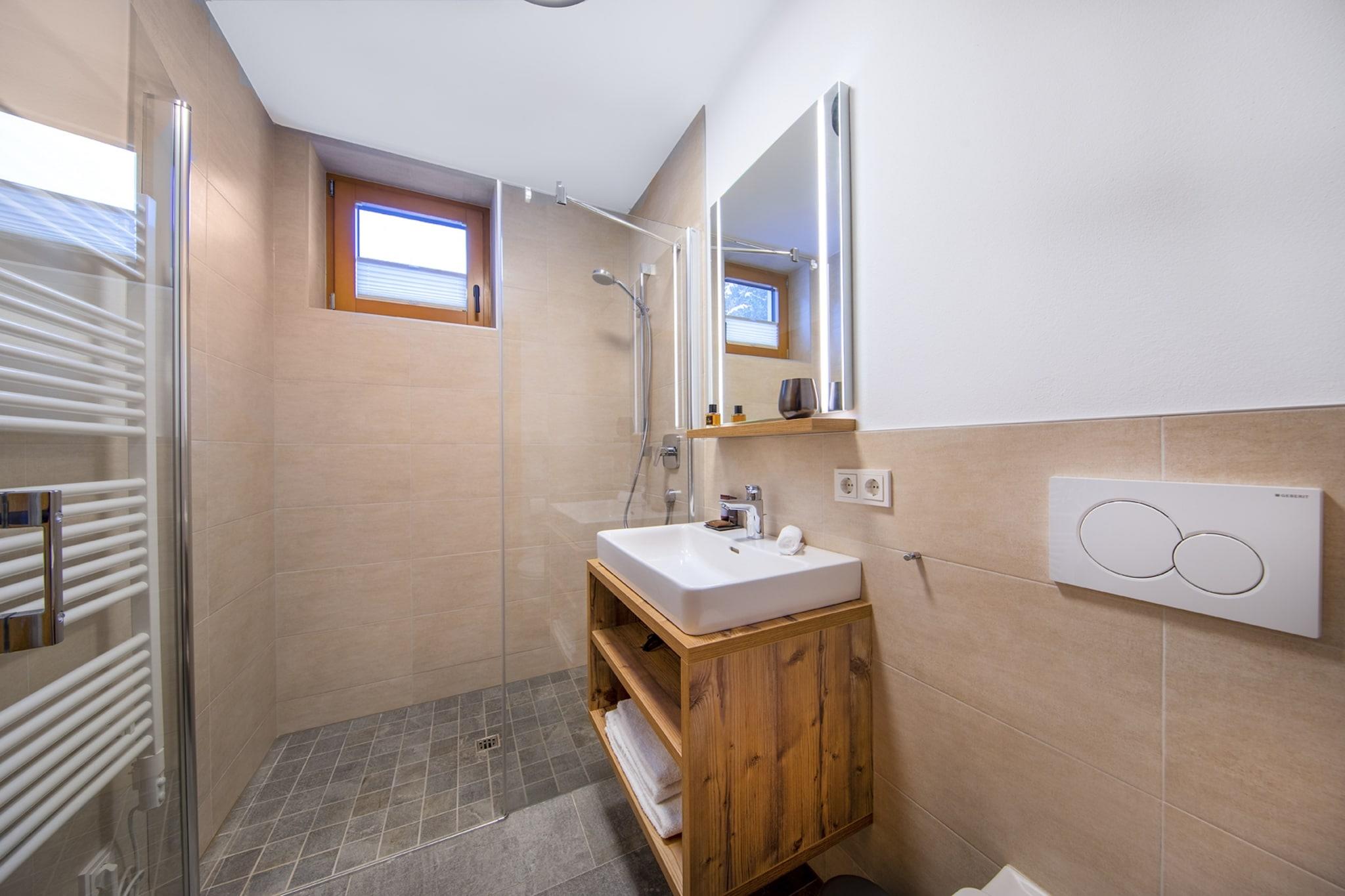 Am Rande des malerischen Dorfes Neukirchen am Großvenediger finden Sie die Nationalpark Chalets einschließlich des Chalets Schlieferspitze. Diese Chalets sind nach einem der Gipfel des Nationalparks Hohe Tauern benannt. Sie können mit insgesamt acht Personen einen komfortablen Urlaub in dem luxuriös eingerichteten Chalet genießen. Von allen Etagen des Chalets jeweils mit Balkon oder Terrassen, gibt es einen uneingeschränkten Blick gen Süden auf die Berge des Nationalparks Hohe Tauern inklusive dem Großvenediger. Im großen Wohn-/Essraum haben Sie Zugang zur einer großen, überdachten Terrasse mit Esstisch und Liegestühlen. Dieser Raum ist der Treff- und Mittelpunkt des Chalets für gemütliche Abende mit Familie und Freunden. Im Stil alpin-modern eingerichtet, befinden sich eine gemütliche Sitzecke mit Kamin, ein großer Esstisch und eine moderne Kochinsel. Es gibt ein separates TV-Zimmer. Vier Schlafzimmer haben Doppelbetten, von denen zwei ein Badezimmer en Suite haben. Als Sahnehäubchen auf dem Kuchen gibt es noch ein zusätzliches Badezimmer inklusive finnischer Sauna. Das Chalet befindet sich am oberen Ende der Nationalpark Chalets in einer ruhig gelegenen Sackgasse. Wenn das kein erholsamer Urlaub ist! Im Winter legen Sie Ihre Ski und Skischuhe beim Betreten des Chalets Schlieferspitze einfach im Skiabstellraum ab. Die Talabfahrt des Skigebiets Wildkogel Arena führt an den Nationalpark Chalets vorbei, somit sind Sie ganz schnell auf der Piste! Am unteren Pistenende können Sie mit dem Skibus die Gondel erreichen, welche Sie zum Berggipfel oder zu einem der nahe gelegenen Skigebiete, die Zillertal Arena oder die Kitzbüheler Alpen, bringt. Nach einem Tag im Schnee lassen Sie sich im Chalet dann ganz entspannt auf die Couch am Kamin fallen und unterhalten sich mit den anderen angeregt über die Abenteuer dieses Tages. Im Sommer können Sie bis spät in den Abend hinein auf der überdachten Terrasse mit Infrarot-Heizstrahler die frische Luft genießen. Erkunden Sie den Nationalpark Hohe Tauern auf den markierten Wander- und Radwegen. Auch für Kinder bietet diese Umgebung viel Spaß! Nehmen Sie die Gondel hoch zum Berggipfel, wo die Kids ein großer Spielplatz erwartet. Oder Sie sind quasi „Stubenhocker“ der Nationalpark Chalets und gehen relaxt zum Naturbadesee an der Rezeption, dort, wo auch die Kinder unbeschwert spielen können. Die Nationalpark Sommercard ist während Ihres Aufenthaltes inbegriffen und damit können Sie viele Extras sowie kostenlose Sommeraktivitäten nutzen.