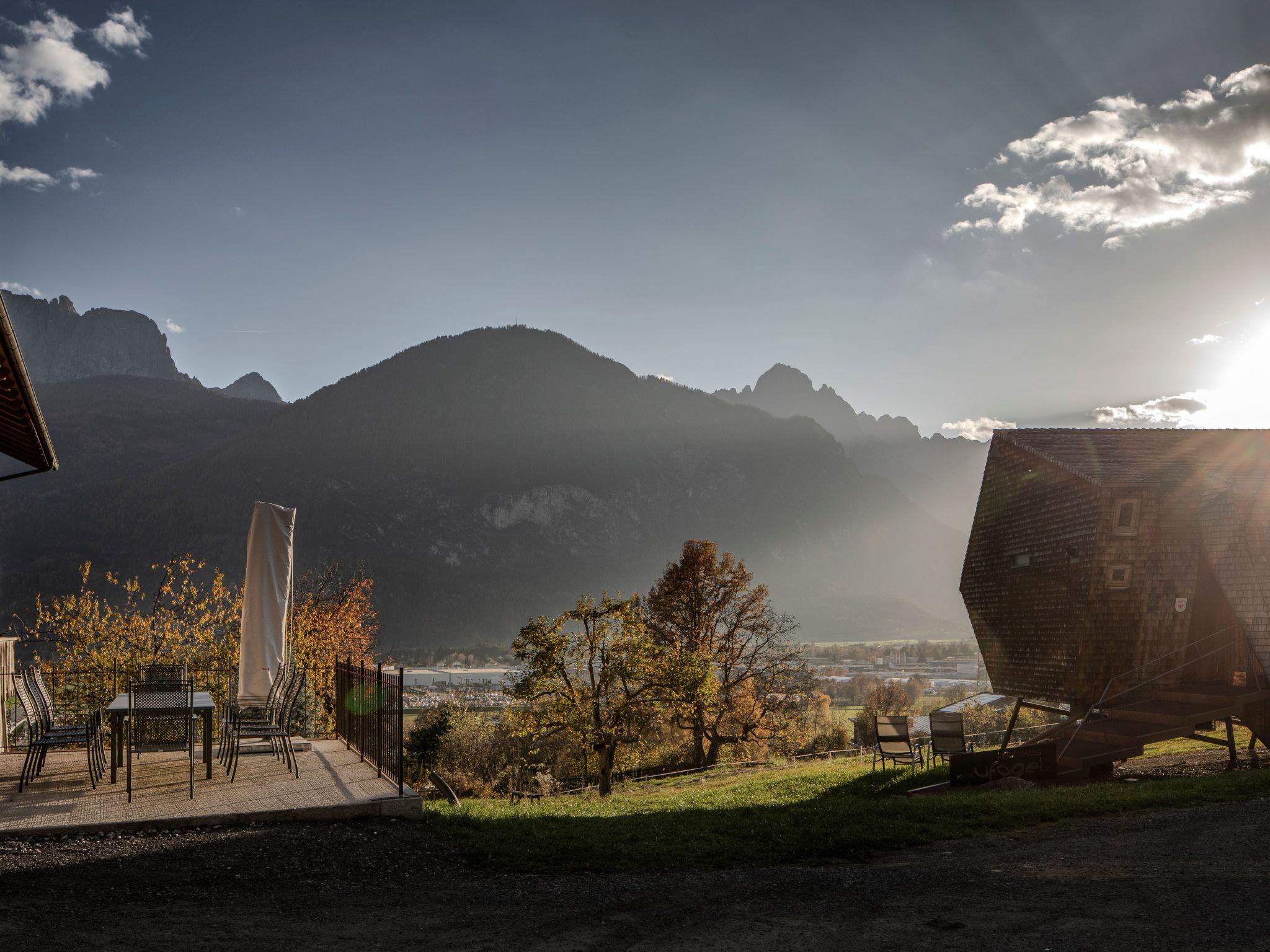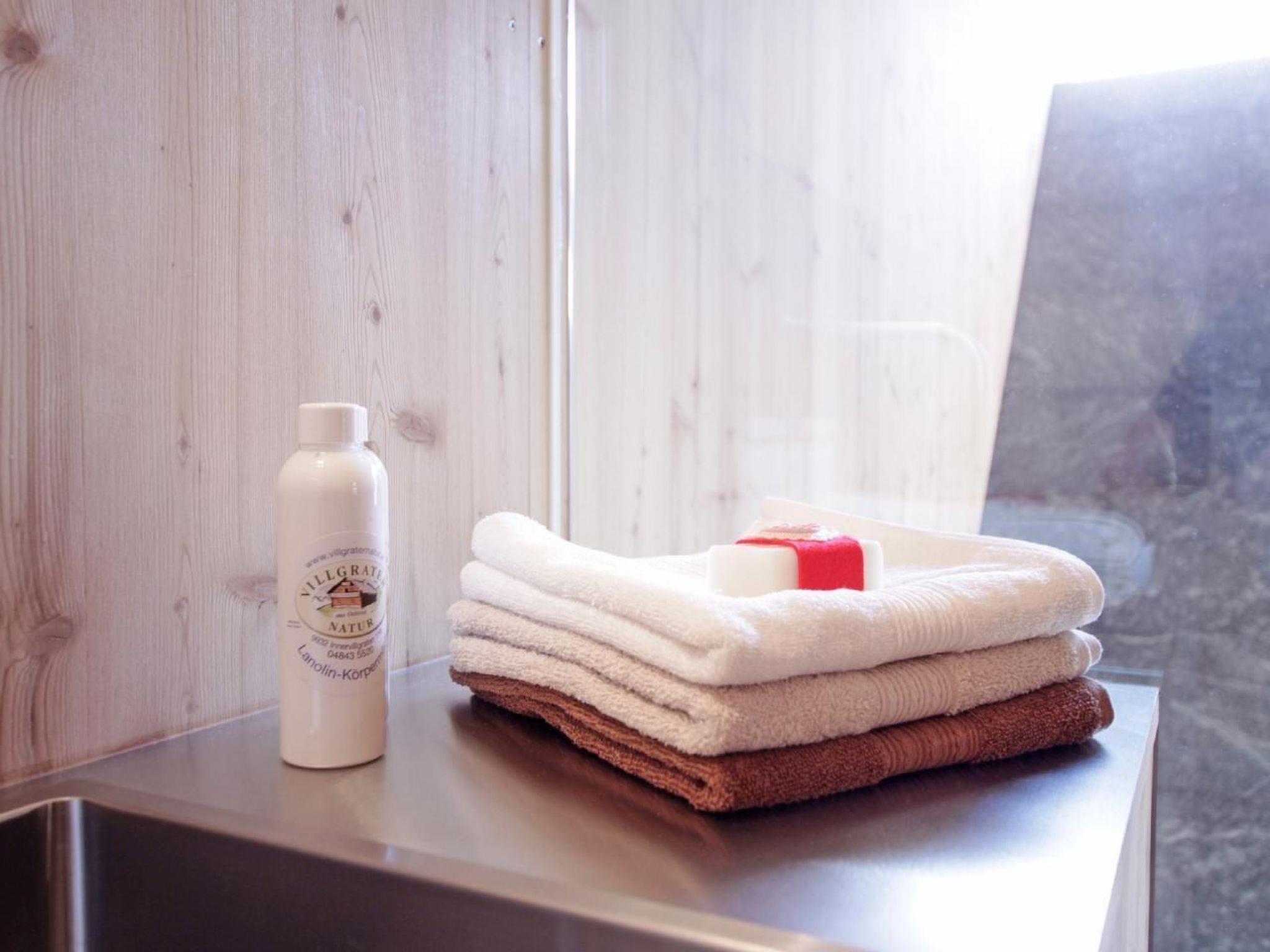 Das barrierefreie Badezimmer, mit Blick auf die Osttiroler Bergwelt, macht das Duschen zum Erlebnis. Der Ufogel ist ausgestattet mit einer Fußbodenheizung, welche optional durch den Kaminofen ergänzt werden kann. Für heiße Sommertage ist ein vollautomatisches Sonnenschutzsystem installiert, welches bei Bedarf auch manuell bedient werden kann. Zusätzlich sorgt eine Klimaanlage für ein angenehmes Wohnklima. Zur Unterhaltung steht den Gästen des Ufogel ein Sat-TV, ein Radio mit CD-Player sowie WLAN in der gesamten Urlaubshütte kostenlos zur Verfügung.