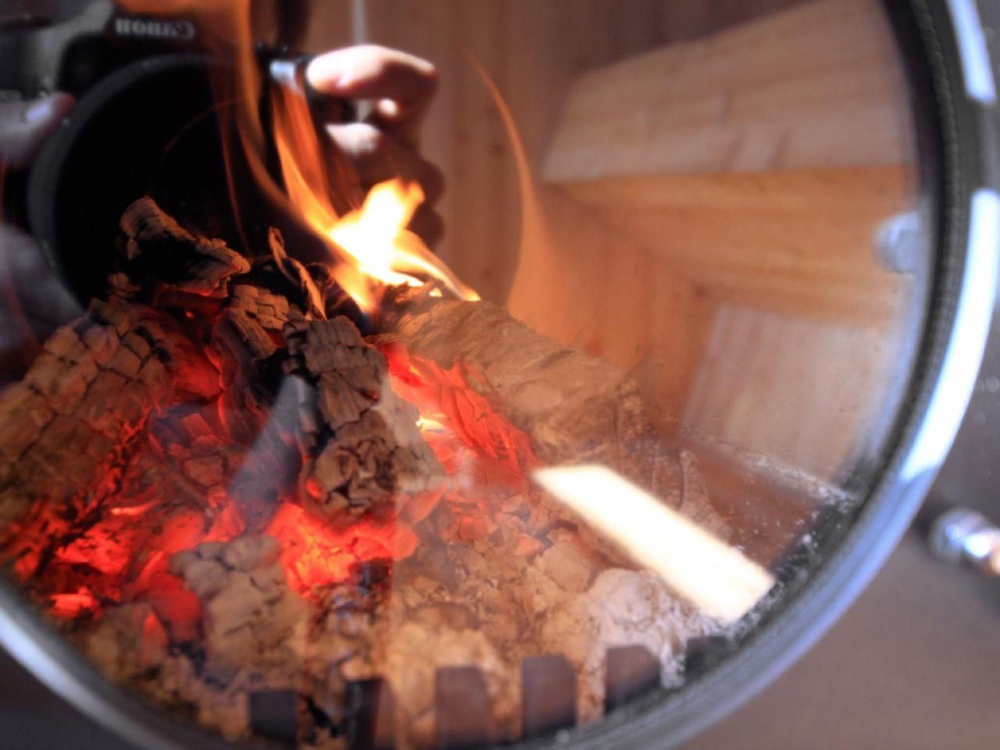 Die großzügige Wohnküche mit stilistisch angebauter Kochnische, Spüle und einer voll ausgestatteten Küchenzeile lässt keine Wünsche offen. Ausgestattet ist die Küche mit einem Elektroherd, einem Backofen, einem Kühlschrank mit Gefrierfach, einer Nespresso-Kaffeemaschine, einem Toaster sowie einem Wasserkocher. Ein Kaminofen mit Kochplatte ergänzt die Küche und verbreitet wohlige Wärme in der ganzen Hütte. An dem hölzernen Esstisch finden alle Hüttengäste bequem Platz und bekommen zusätzlich einen traumhaften Ausblick auf die Bergwelt Osttirols geboten. Unter dem großen Panoramafenster bieten die weichen und aus natürlichem Stoff angefertigte Sitz- und Liegekissen ein lauschiges Plätzchen für entspannte und erholsame Hüttenabende.
