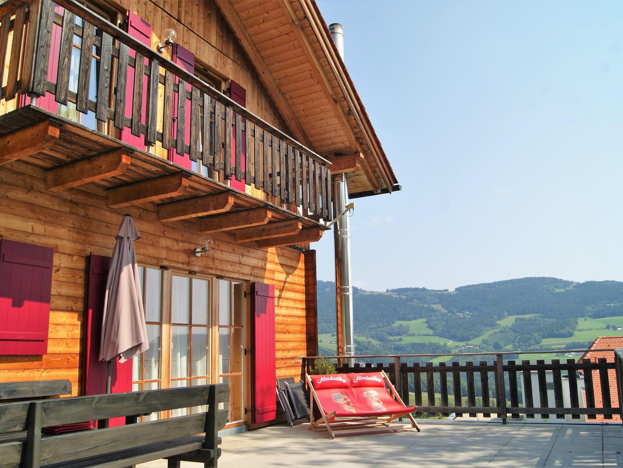 Ferienhaus aus Lärchenholz, direkt in Pöllauberg, mit edlem Holzdesign ausgestattet, ruhige Lage, Spitzengastronomie vor der Haustür, am Waldrand gelegen, große eingezäunte Terrasse mit traumhaften Ausblicken ins weite Land, Teich in der Nachbarschaft