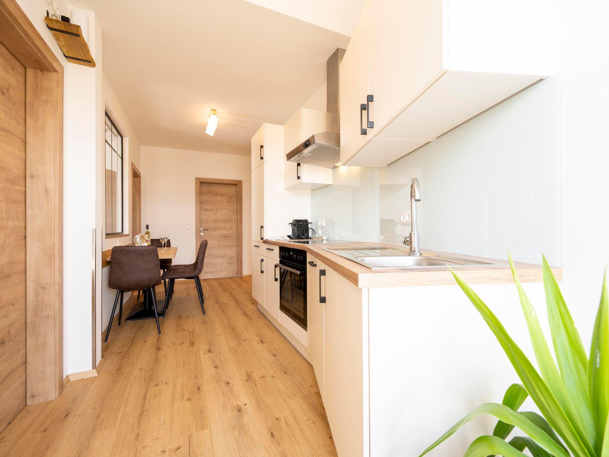 Die Ferienwohnung (ca.55m2) befindet sich im 1. Stock und verfügt über 2 Schlafzimmer, ein Badezimmer, Wc, Küche mit Essbereich und einen Balkon und Terrasse mit herrlichen Blick übers Pöllauer Tal.
