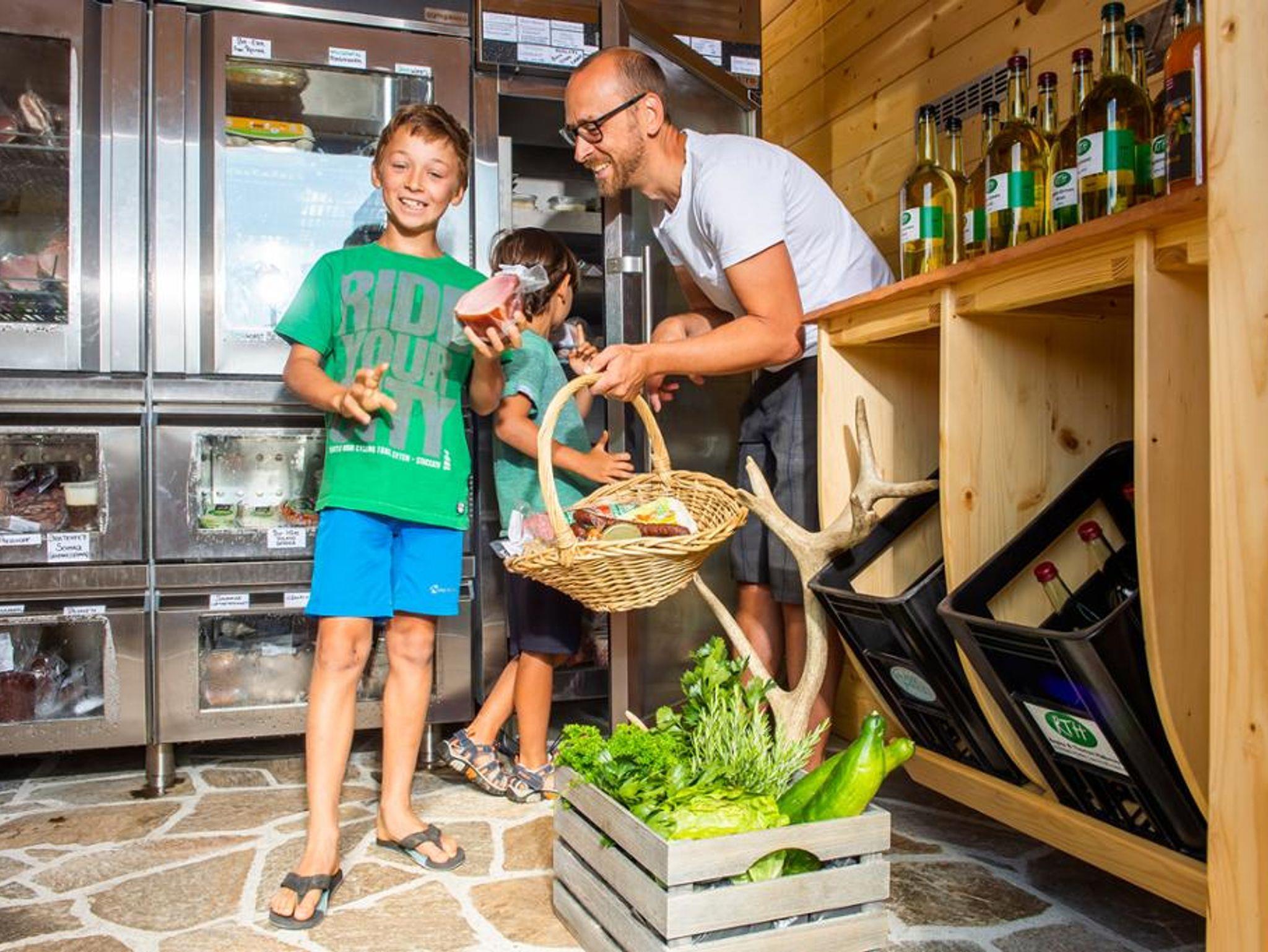 Für Frühstück, Mittag- oder Abendessen gibt es einen kleinen feinen Ab-Hof-Verkauf. Im angeschlossenen eigenen Gastbetrieb können während der Öffnungszeiten regionale Schmankerl genossen werden. Frisches Gebäck, hausgemachte Marmeladen, Butter, Wurst, Schinken, Käse u.s.w. sind täglich frisch am Hof erhältlich.