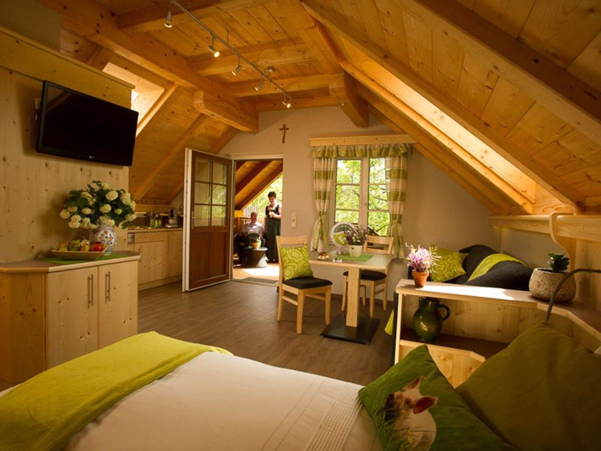 Die Wohnung Leonhard liegt im Erdgeschoss des Gästehauses und ist modern und hell mit Naturholzmöbel eingerichtet. WLAN; Sat - TV, Geschirrspüler, Kaffeemaschine, Mikro- Backrohr.
