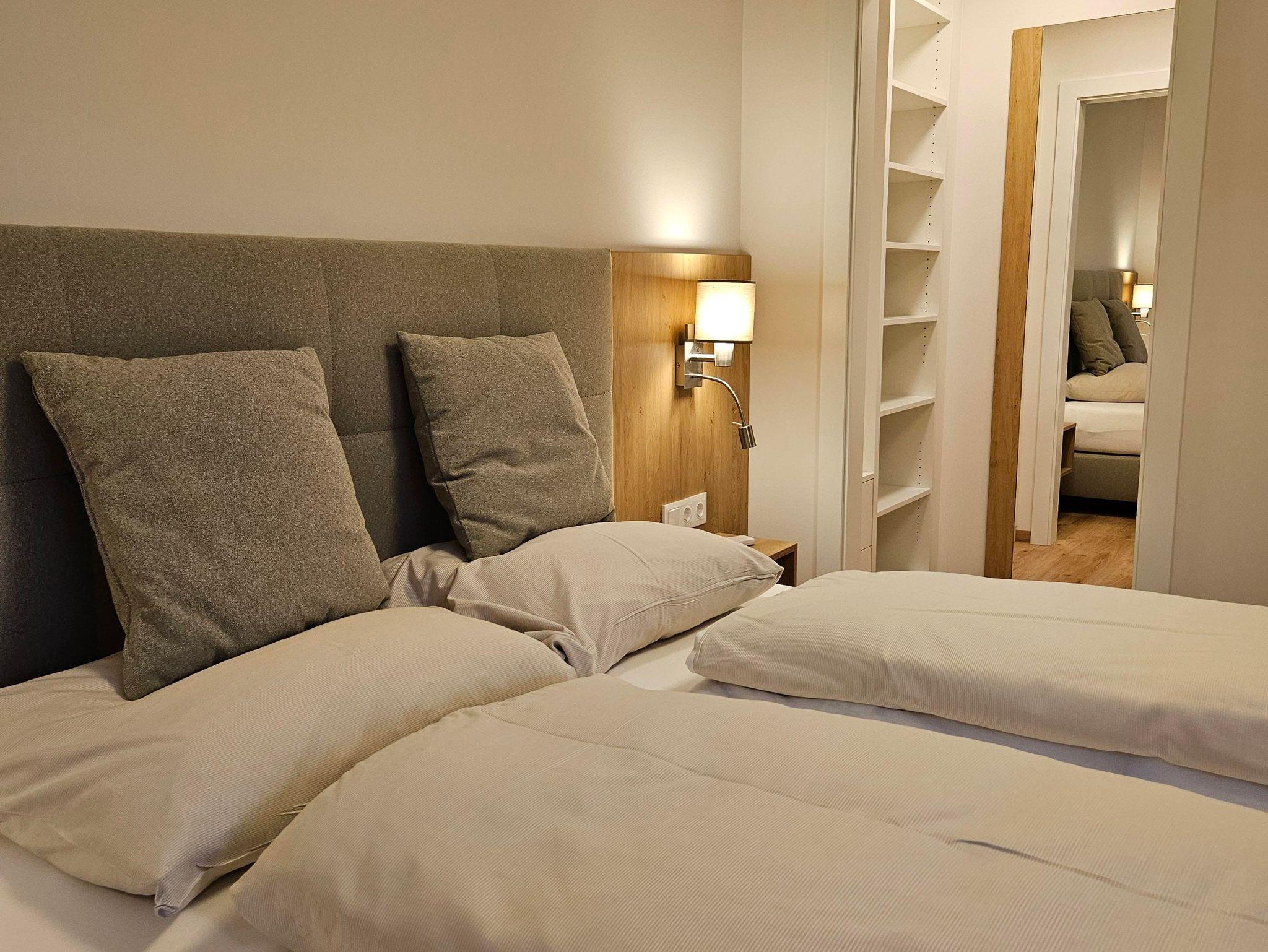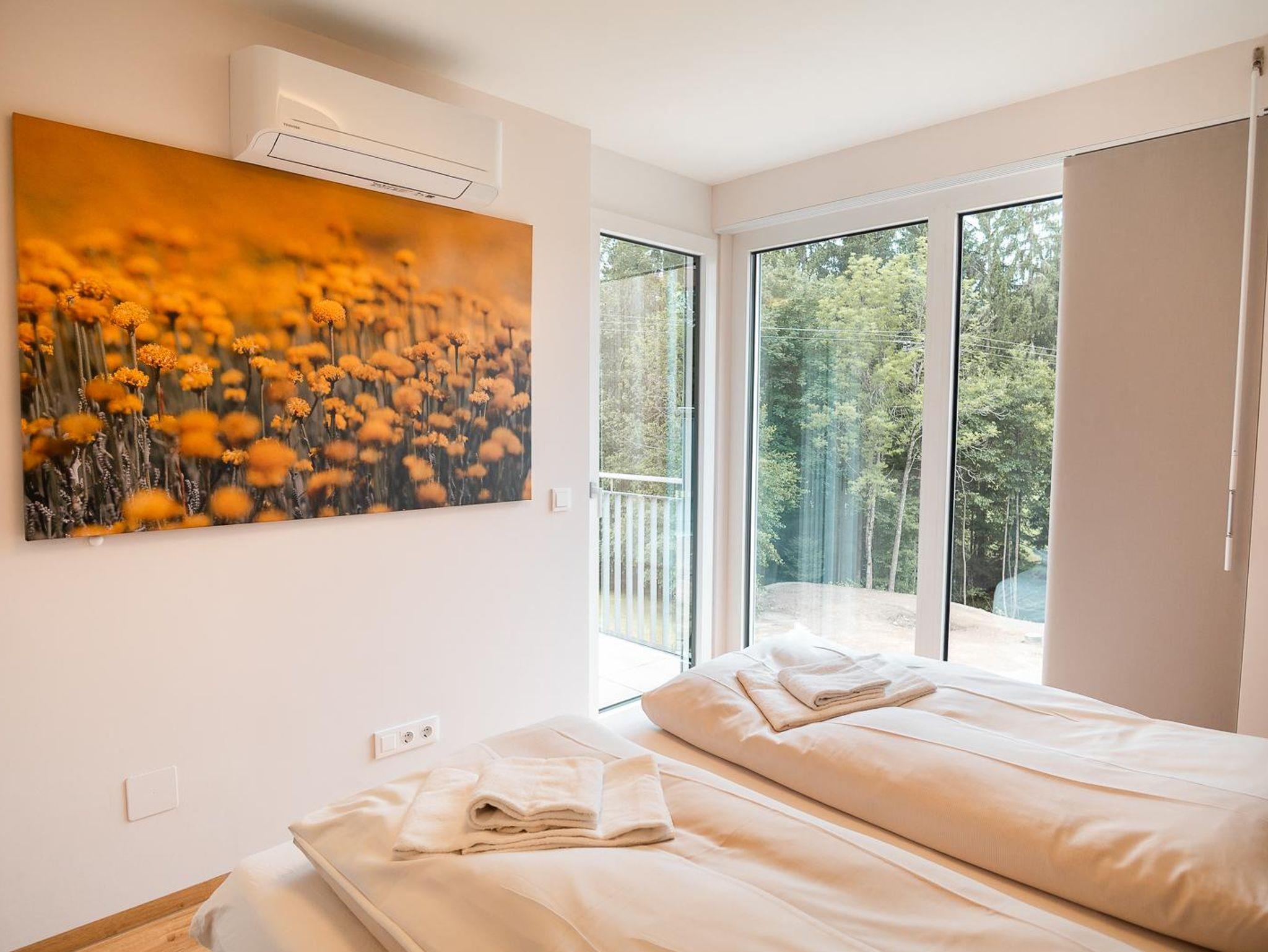 Gemütliche Holz-Lodges verbunden mit moderner, hochwertiger Ausstattung; ruhig mitten im Grünen und gleichzeitig seid ihr in wenigen Minuten direkt am Wörthersee. Auf 60m² Wohnfläche erwartet euch ein lichtdurchfluteter Wohn-Essbereich mit moderner, voll ausgestatteter Küche – ideal für gemeinsame Kochabende mit Familie oder Freunden. Die Küche lässt keine Wünsche offen. Zwei gemütliche Schlafzimmer – eines mit Doppelbett, das andere mit einem praktischen Hochbett – sowie eine bequeme Schlafcouch im Wohnzimmer bieten Platz für bis zu sechs Personen. An sonnigen Tagen genießt ihr eure Mahlzeiten auf eurer eigenen Terrasse mit kleinem Garten. Und wenn der Tag langsam ausklingt, wartet schon ein besonderes Highlight auf euch: die 50 qm große, private Dachterrasse mit gemütlichen Loungemöbeln. Hier seid ihr ungestört, vor Blicken geschützt – und der Sternenhimmel gehört ganz euch.