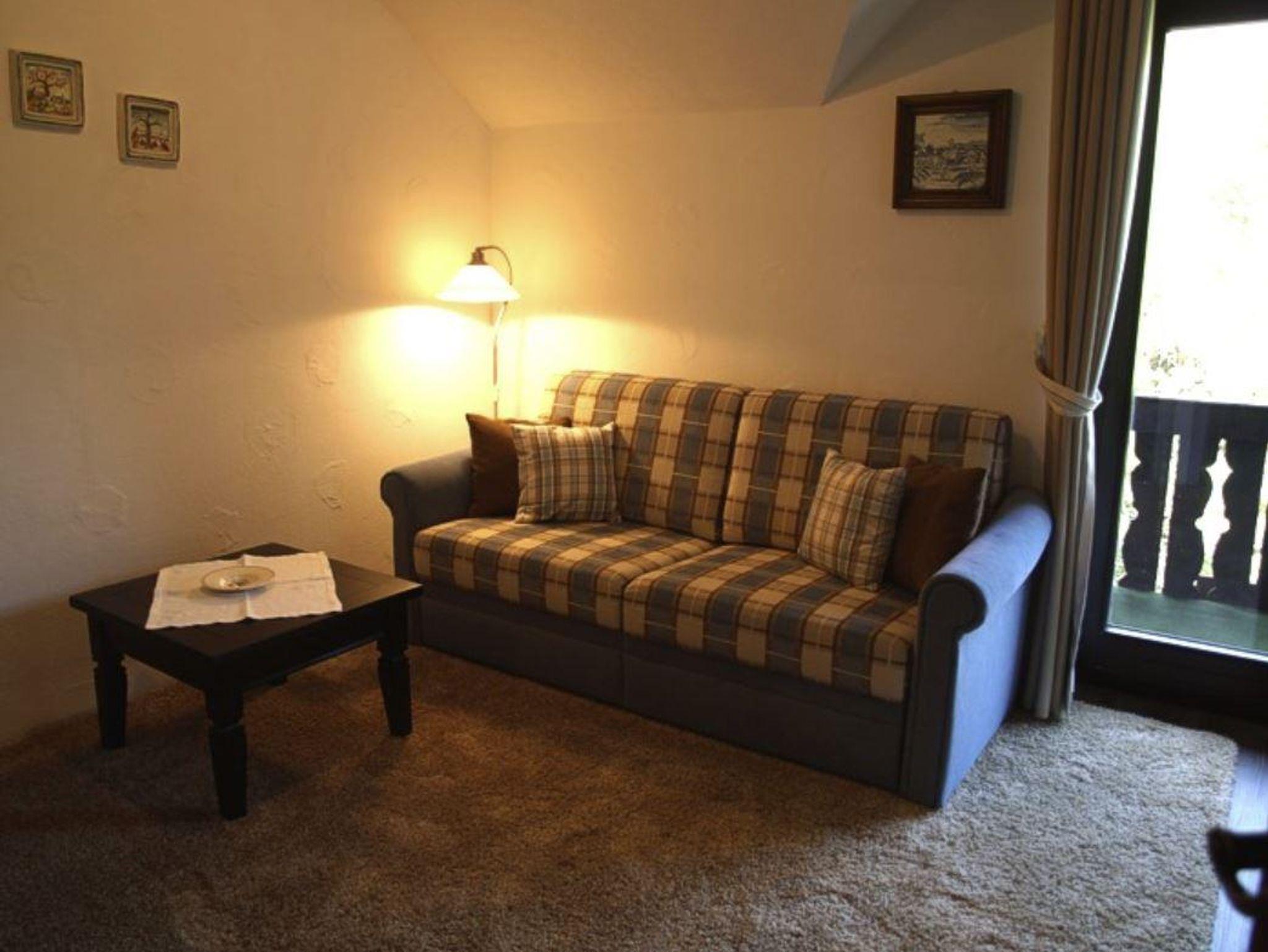 Wenn Sie diese Wohnung betreten stehen Sie in einem großzügigen Vorraum mit der Garderobe. Von dort gelangt man zu den beiden Schlafzimmern, die beide über ein Doppelbett verfügen (eines davon hat einen weiteren SAT-TV). Von einem davon haben Sie Zutritt zum südseitigen Balkon. Weiters geht es vom Vorraum auch zum WC, zum Badezimmer mit Dusche und zum Wohnraum. Im Wohnraum ist eine offene voll ausgestattete Küche (Geschirrspüler, E-Herd mit Backrohr, Kühlschrank mit Gefrierfach, Mikrowelle, Toaster, NESPRESSO Kaffeemaschine, Filter-Kaffeemaschine, Wasserkocher, diverse Küchengeräte und ausreichend Geschirr), daneben der Essbereich und eine gemütliche Sitzecke mit SAT-TV und DVD-Player. Auch von diesem Raum gelangen Sie zum großen, südseitig gelegenen Balkon (Liegestühle und Sitzgelegenheit), von wo Sie einen wunderschönen Ausblick auf die Berge haben.
