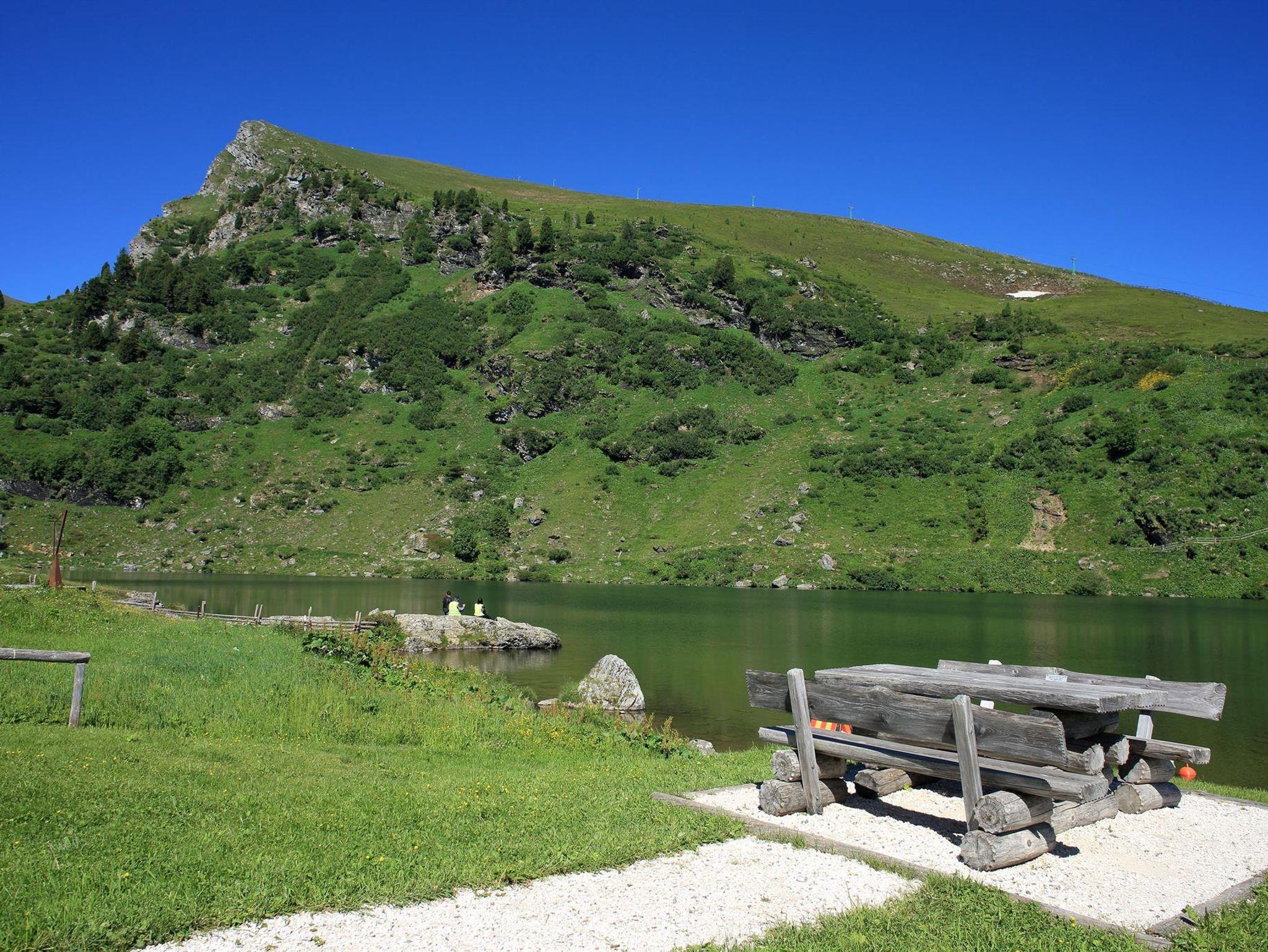 Im Sommer oberhalb unseres schönen Bergsees und gleich in der Nähe der Heidialm mit neuem Kinderspielplatz.