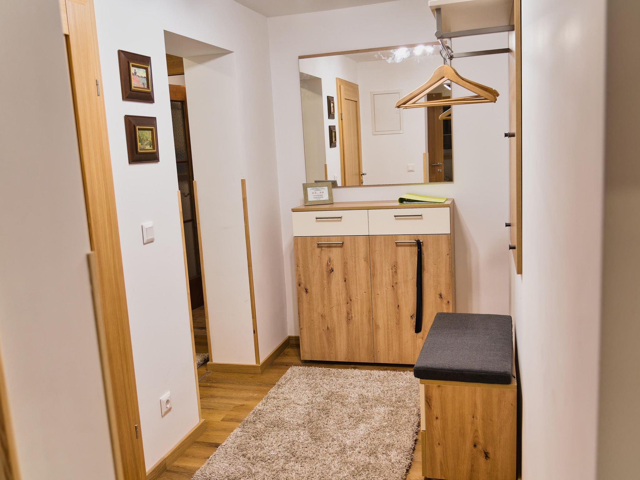 Wenn Sie diese Wohnung betreten stehen Sie im ersten Vorraum. Von dort geht es weiter in die großzügige Garderobe mit viel Stauraum und zum WC.