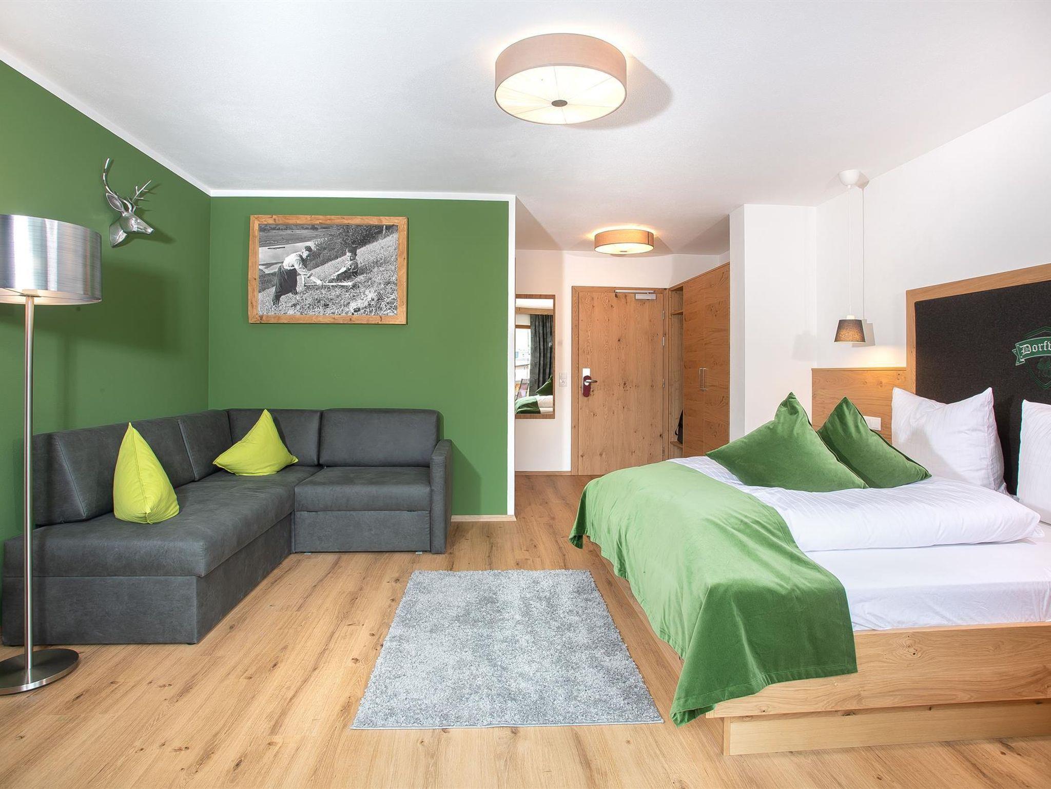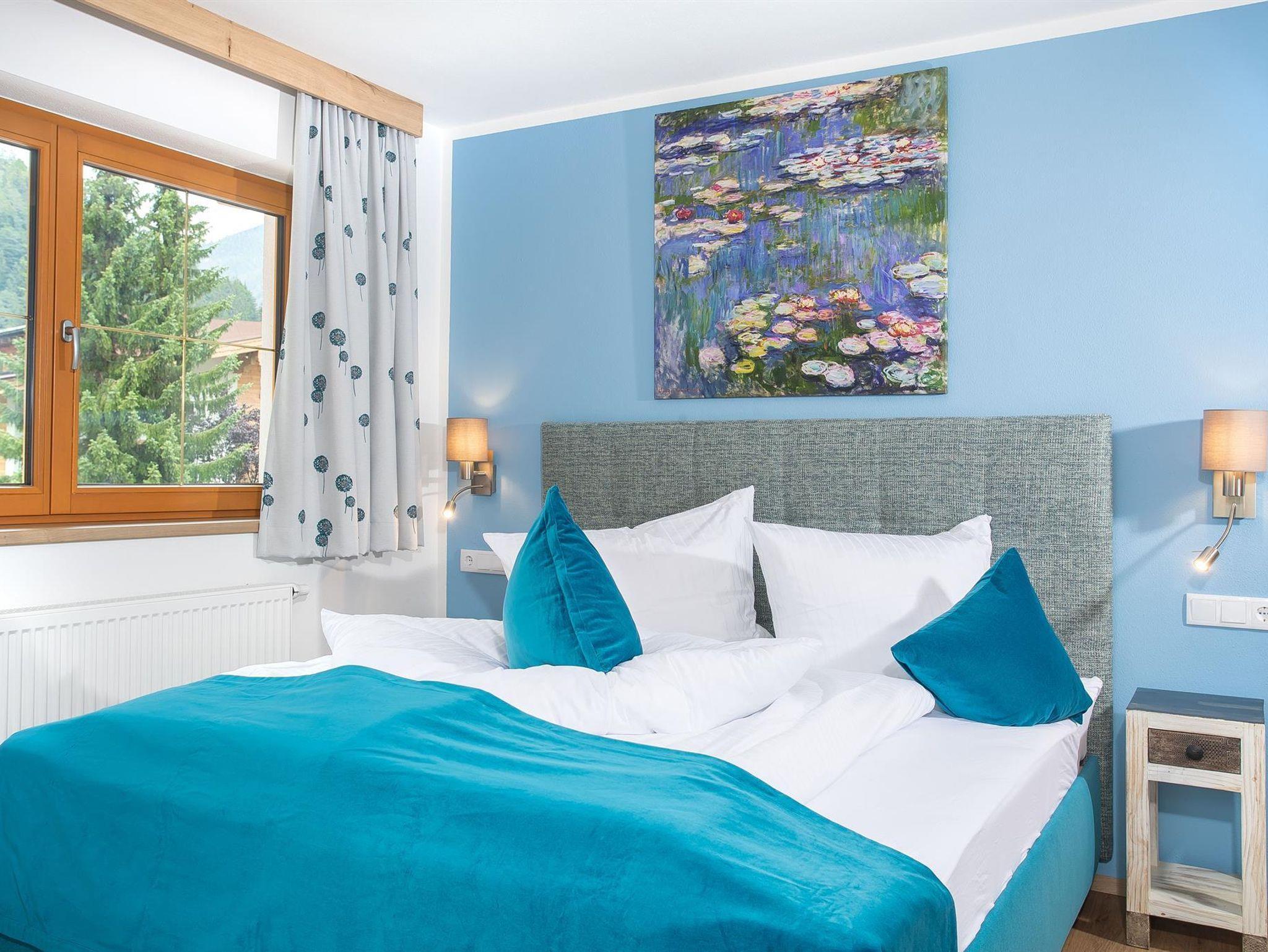 Einzigartig eingerichtete Zimmer mit Bergblick und Balkon oder Terrasse. Auf Anfrage auch als Einzelzimmer buchbar. Bitte beachten Sie, dass die Fotos beispielhaft für diese Kategorie sind.